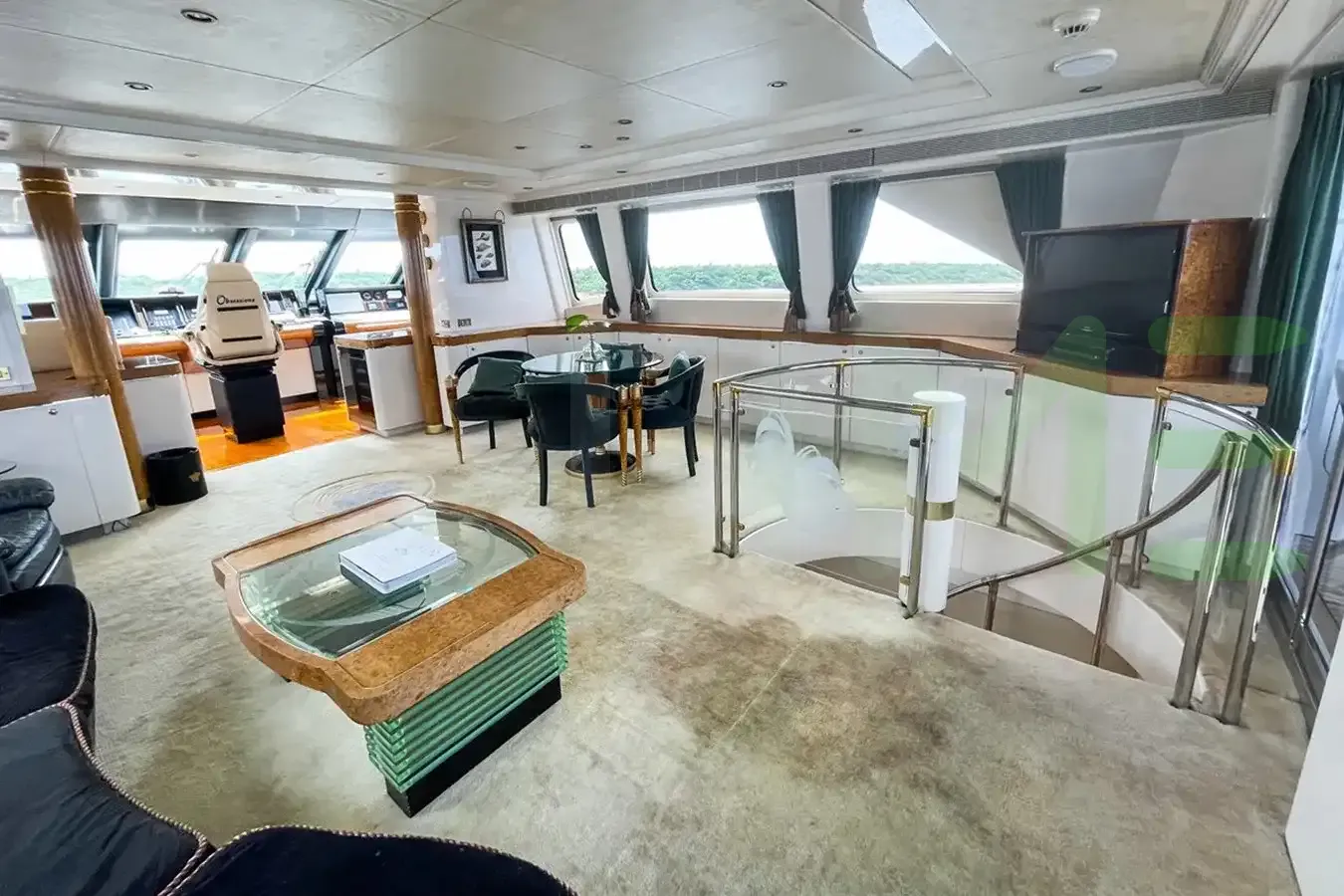 OBSESSIONS is a planning mono-hull motoryacht, with a beam of 24' 5" (7.44 meters), offering stability and comfort during near coastal and inland cruising. The planning hull shape and draft of 6' 11" (2.1 meters) further enhances her speed, allowing quick sprints from port to port, making her ideal for visiting the maximum number of destinations on your itinerary in the shortest period.