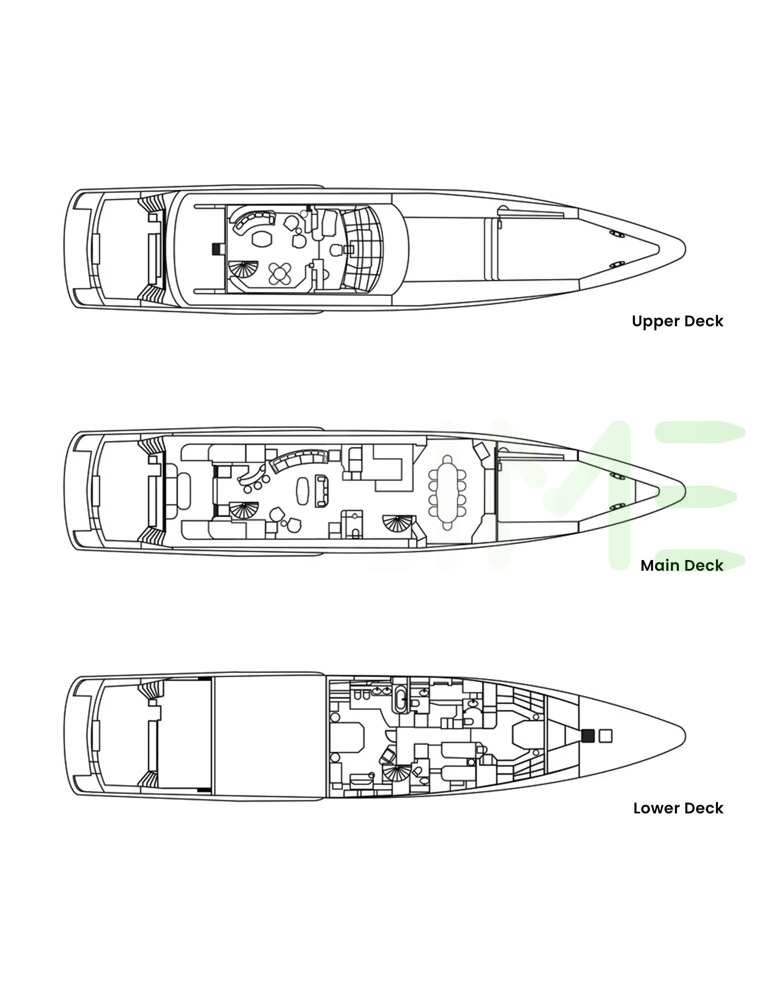 Request plans that include the layout of staterooms, guest areas, and outdoor spaces, as well as crew quarters and work areas.