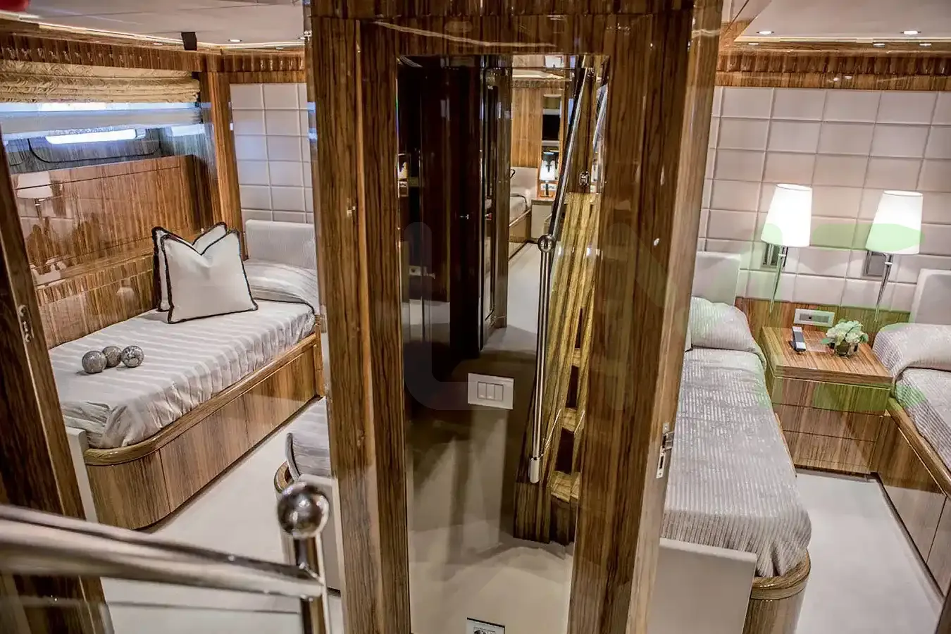 Up to 12 guests can be accommodated on board the yacht OKKO in 5 staterooms. OKKO also includes accommodations for 8 crew members, including the yacht’s captain. Whether you envision private escapes or unforgettable voyages, you're invited to discover a world where elegance meets adventure.