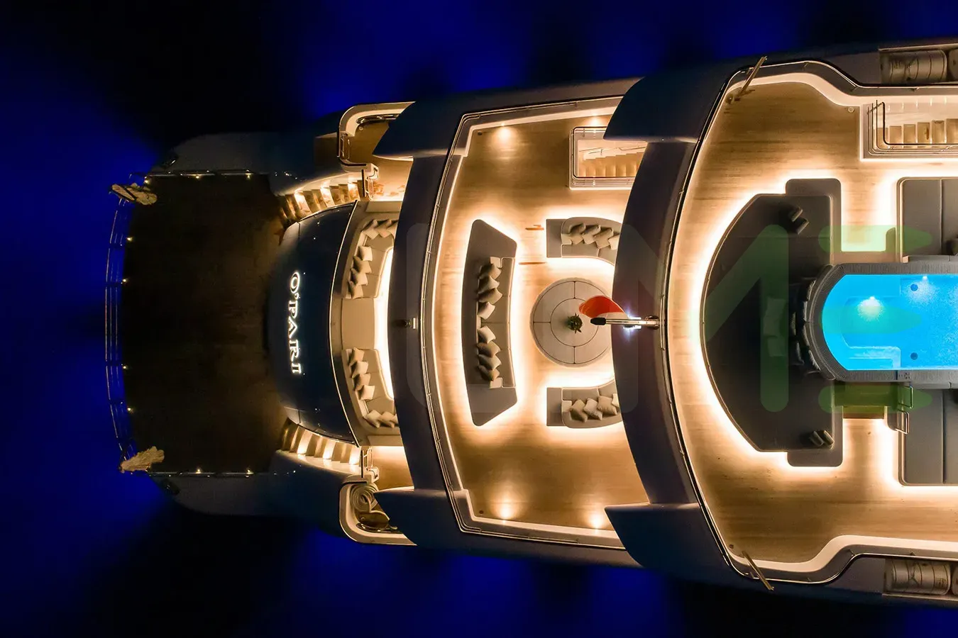 To respect the privacy of the O'PARI yacht owner and guests, the O'PARI yacht location is privately available to prospective clients only. For details about the current location, winter and summer cruising regions, and the availability of the O'PARI yacht for charter, along with additional insider information about alternative yachts similar to O'PARI, contact a LIME yacht charter broker for a full yacht analysis.