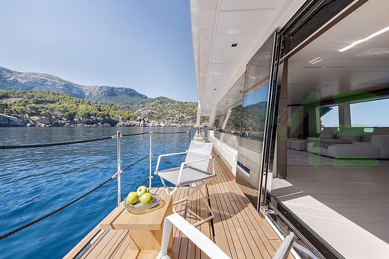 On your charter, you'll find plenty to keep you busy and entertained such as a beach club for you to relax on the edge of the water. Sit back with a glass of champagne in the deck jacuzzi.