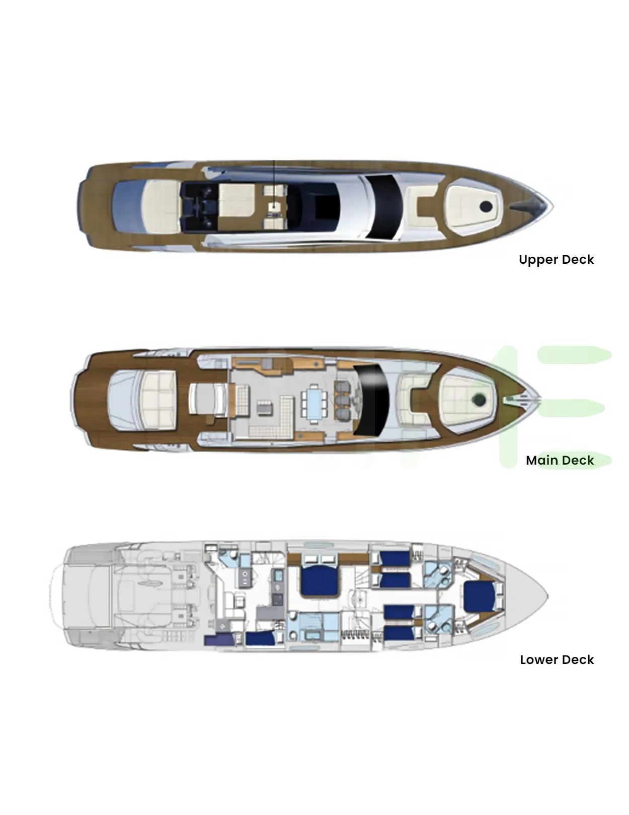 Request plans that include the layout of staterooms, guest areas, and outdoor spaces, as well as crew quarters and work areas.