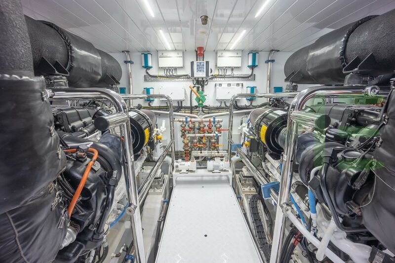 Powered by two Caterpillar main engines, each generating 1,361 horsepower, for a total combined output of 2,722 horsepower. Notably, the PHOENIX yacht is one of 2,691 yachts greater than 65’(19m) with Caterpillar engines.