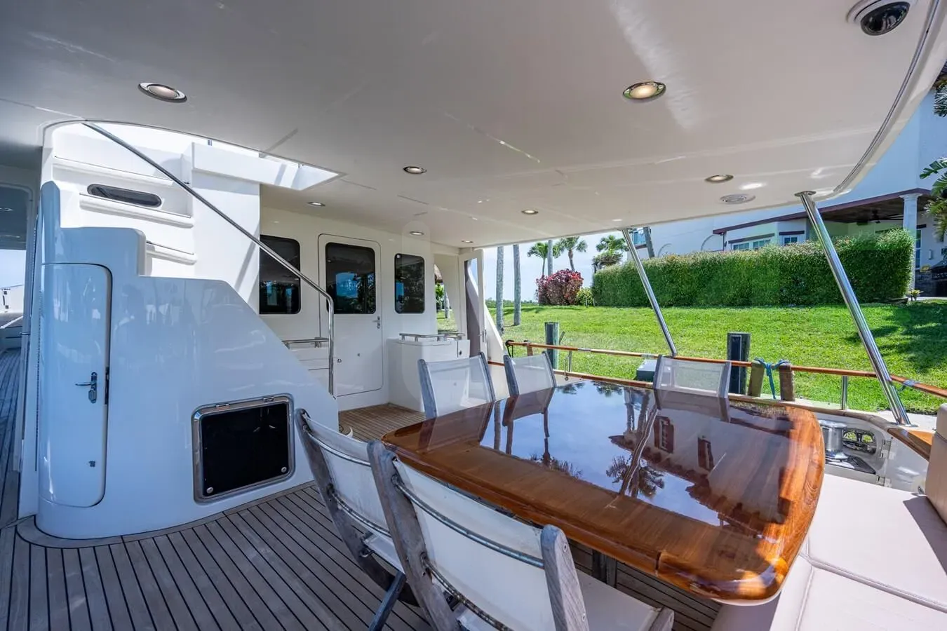 PIVOT is a semi-displacement mono-hull flybridge motoryacht, with a beam of 21' 6" (6.55 meters), offering stability and comfort during near coastal and inland cruising. The semi-displacement hull shape and draft of 5' 4" (1.63 meters) further enhances her speed, allowing quick sprints from port to port, making her ideal for visiting the maximum number of destinations on your itinerary in the shortest period.