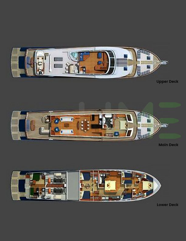 Request plans that include the layout of staterooms, guest areas, and outdoor spaces, as well as crew quarters and work areas.