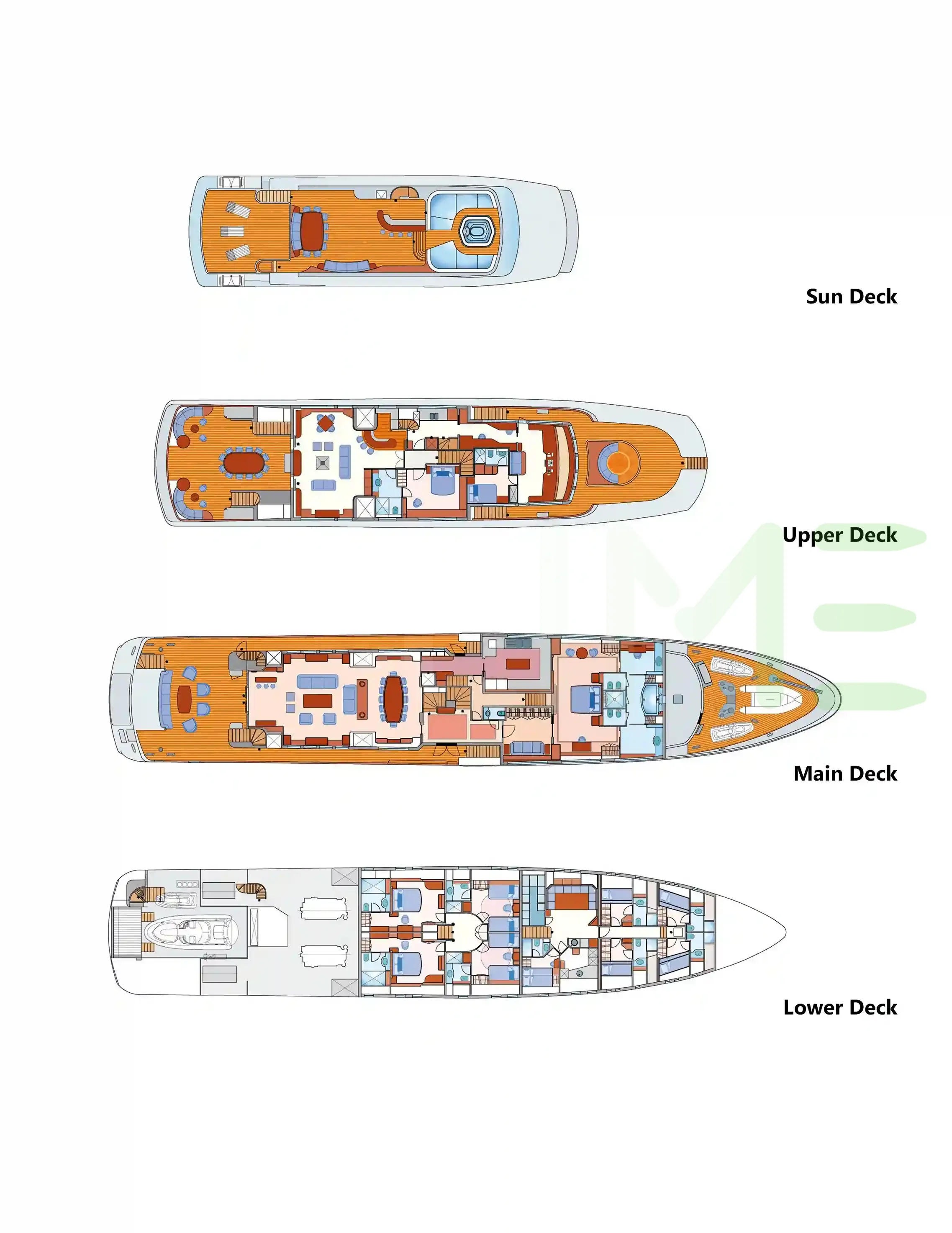 Request plans that include the layout of staterooms, guest areas, and outdoor spaces, as well as crew quarters and work areas.