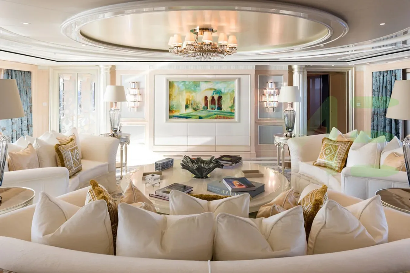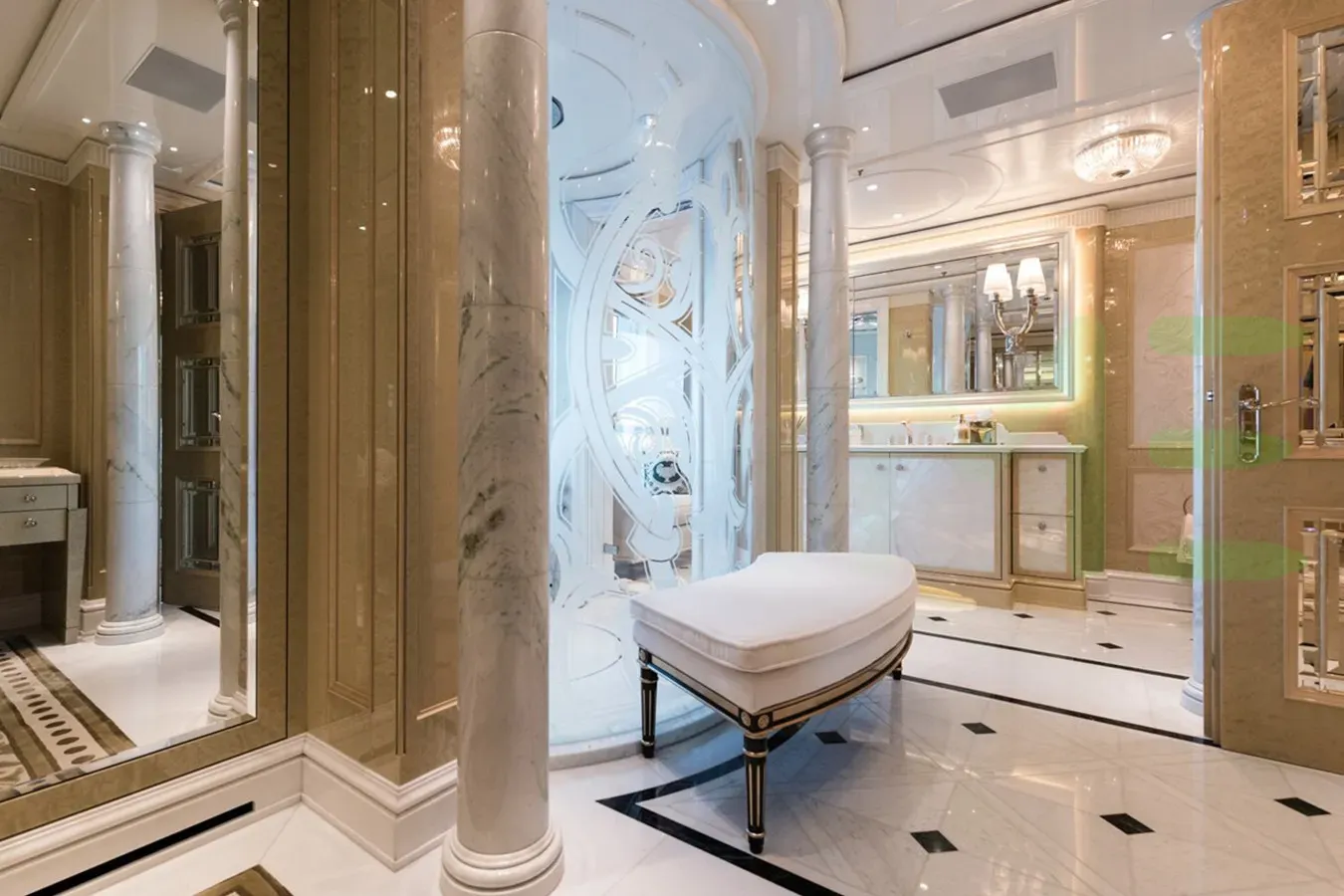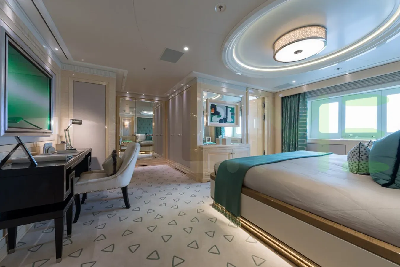 Her features include steam room, spa, beauty salon, beach club and gym.
