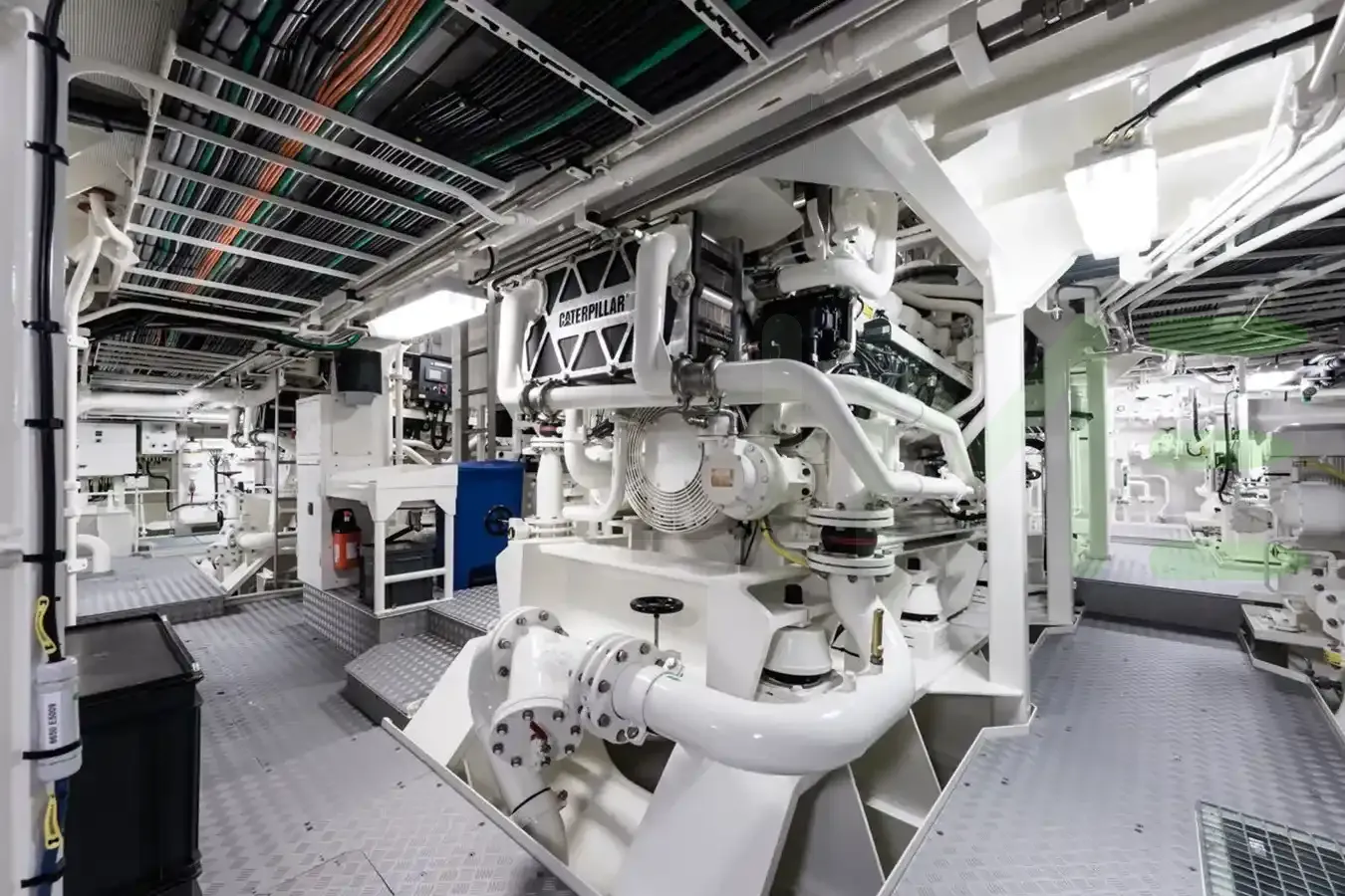 Powered by two Caterpillar main engines, each generating 2,383 horsepower, for a total combined output of 4,766 horsepower. Notably, the PLVS VLTRA yacht is one of 2,673 yachts greater than 65’(19m) with Caterpillar engines.