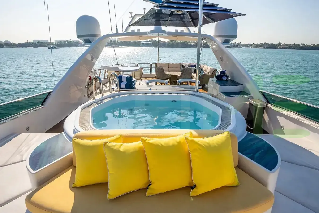 - Expansive sun deck with spa pool and bar