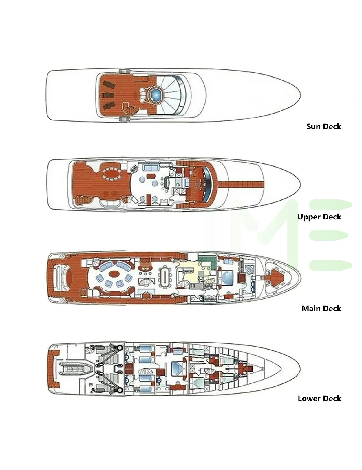 Request plans that include the layout of staterooms, guest areas, and outdoor spaces, as well as crew quarters and work areas.
