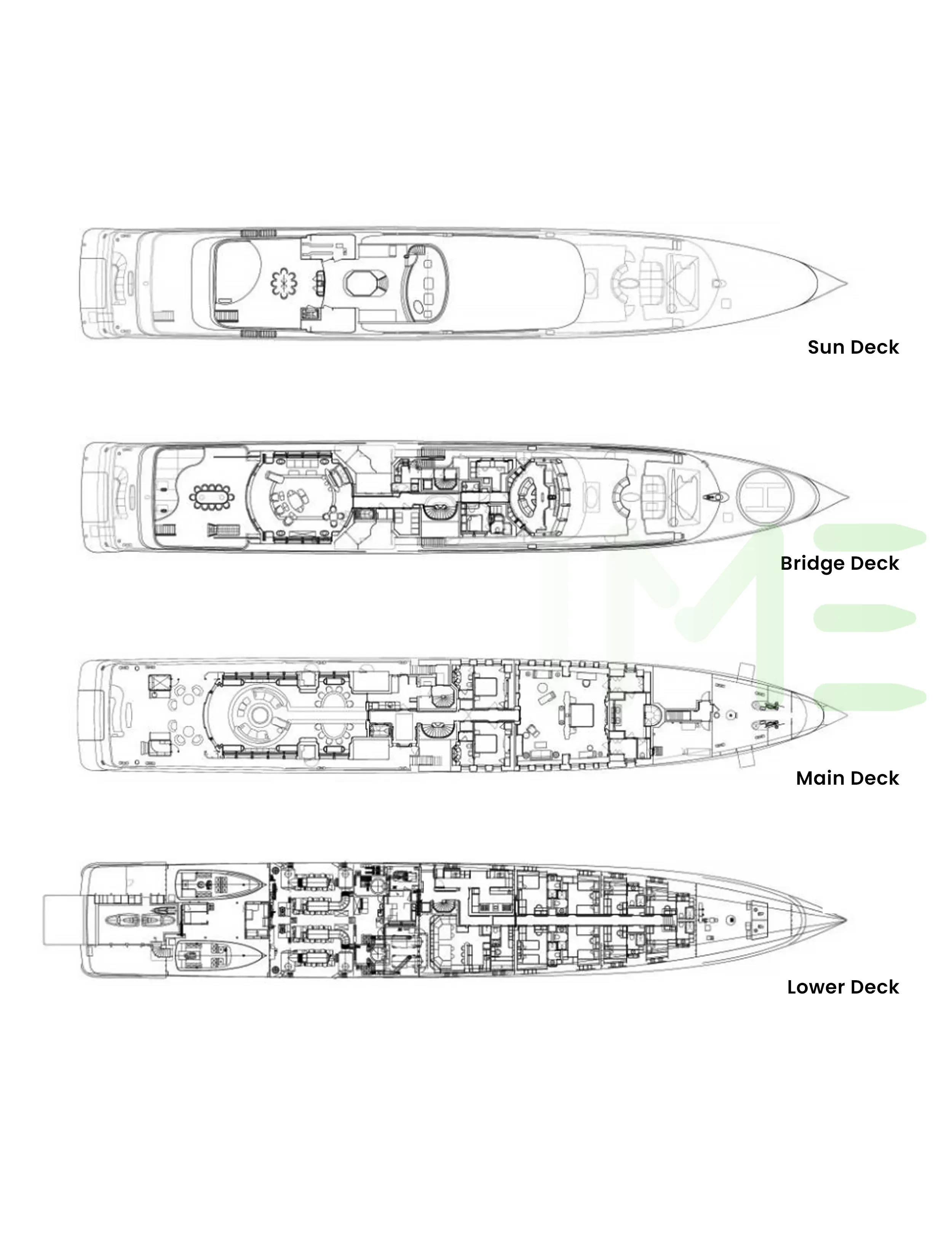 Request plans that include the layout of staterooms, guest areas, and outdoor spaces, as well as crew quarters and work areas.