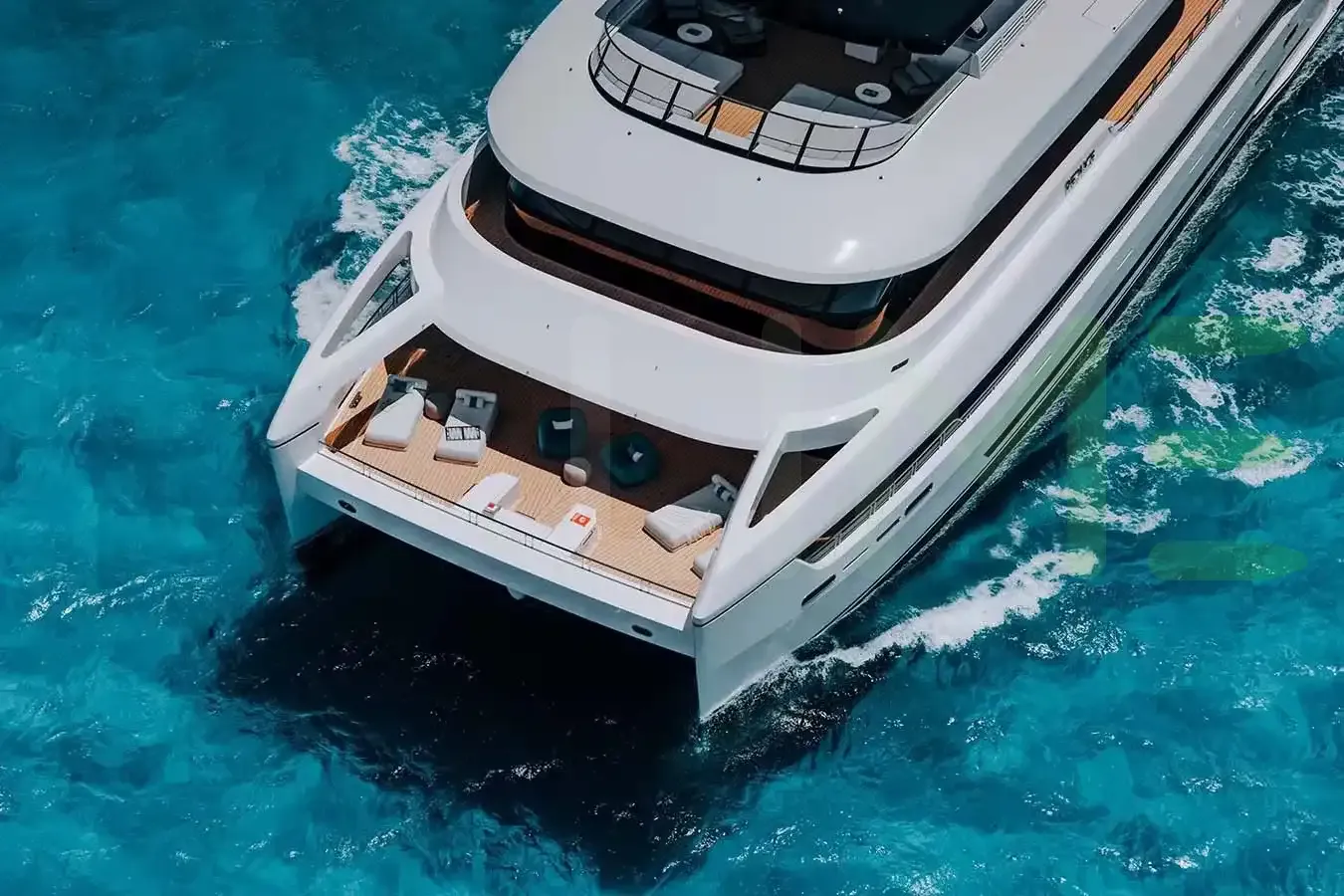 REDUCE is a semi-displacement catamaran luxury motoryacht, with a beam of 44' 7" (13.6 meters), offering stability and comfort during near coastal and inland cruising. The semi-displacement hull shape and draft of 6' 2" (1.87 meters) further enhances her speed, allowing quick sprints from port to port, making her ideal for visiting the maximum number of destinations on your itinerary in the shortest period.