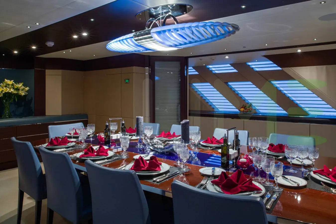 Her features include satellite communications, gym, WiFi and air conditioning.