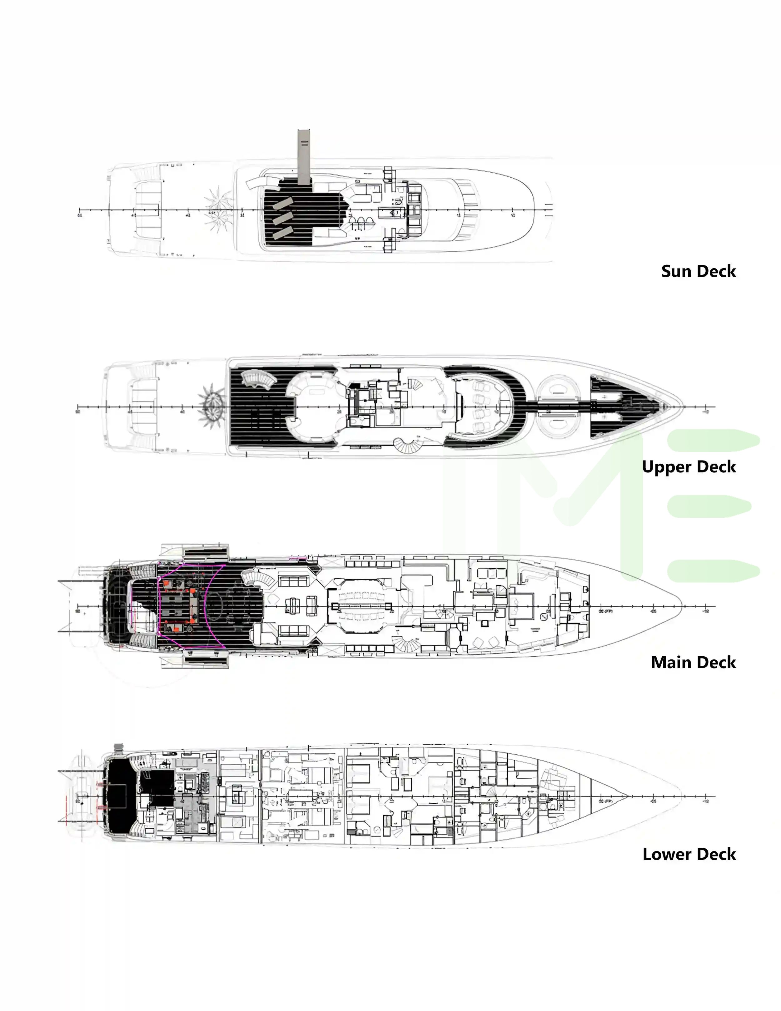 Request plans that include the layout of staterooms, guest areas, and outdoor spaces, as well as crew quarters and work areas.