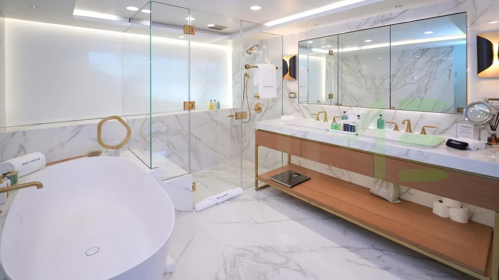 You and your guests can enjoy a variety of experiences on Reverie, notably a gym with all the latest equipment to maintain your fitness routine. Sit back with a glass of champagne in the deck jacuzzi.