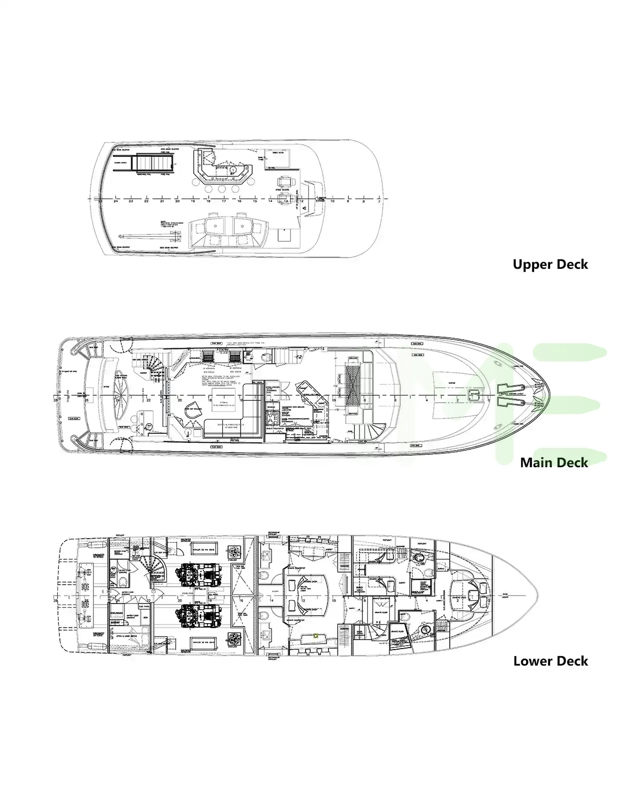 Request plans that include the layout of staterooms, guest areas, and outdoor spaces, as well as crew quarters and work areas.