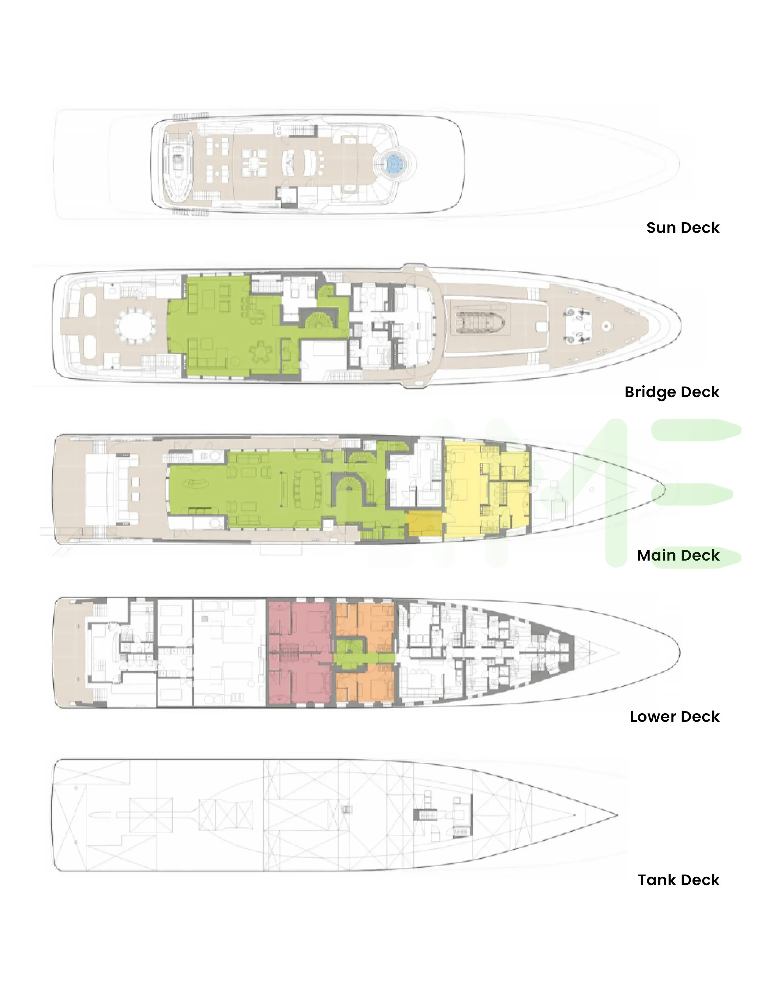 Request plans that include the layout of staterooms, guest areas, and outdoor spaces, as well as crew quarters and work areas.