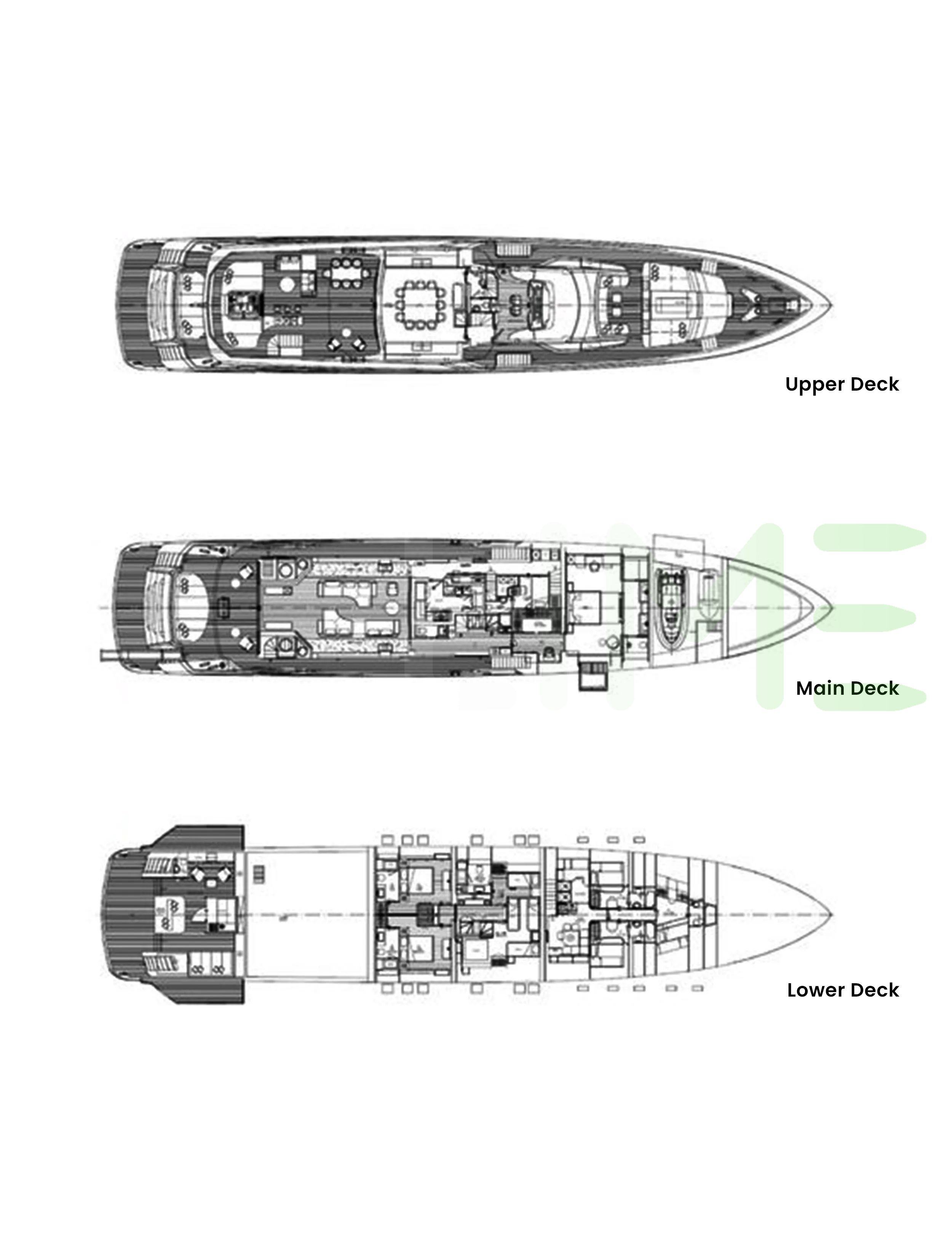 Request plans that include the layout of staterooms, guest areas, and outdoor spaces, as well as crew quarters and work areas.