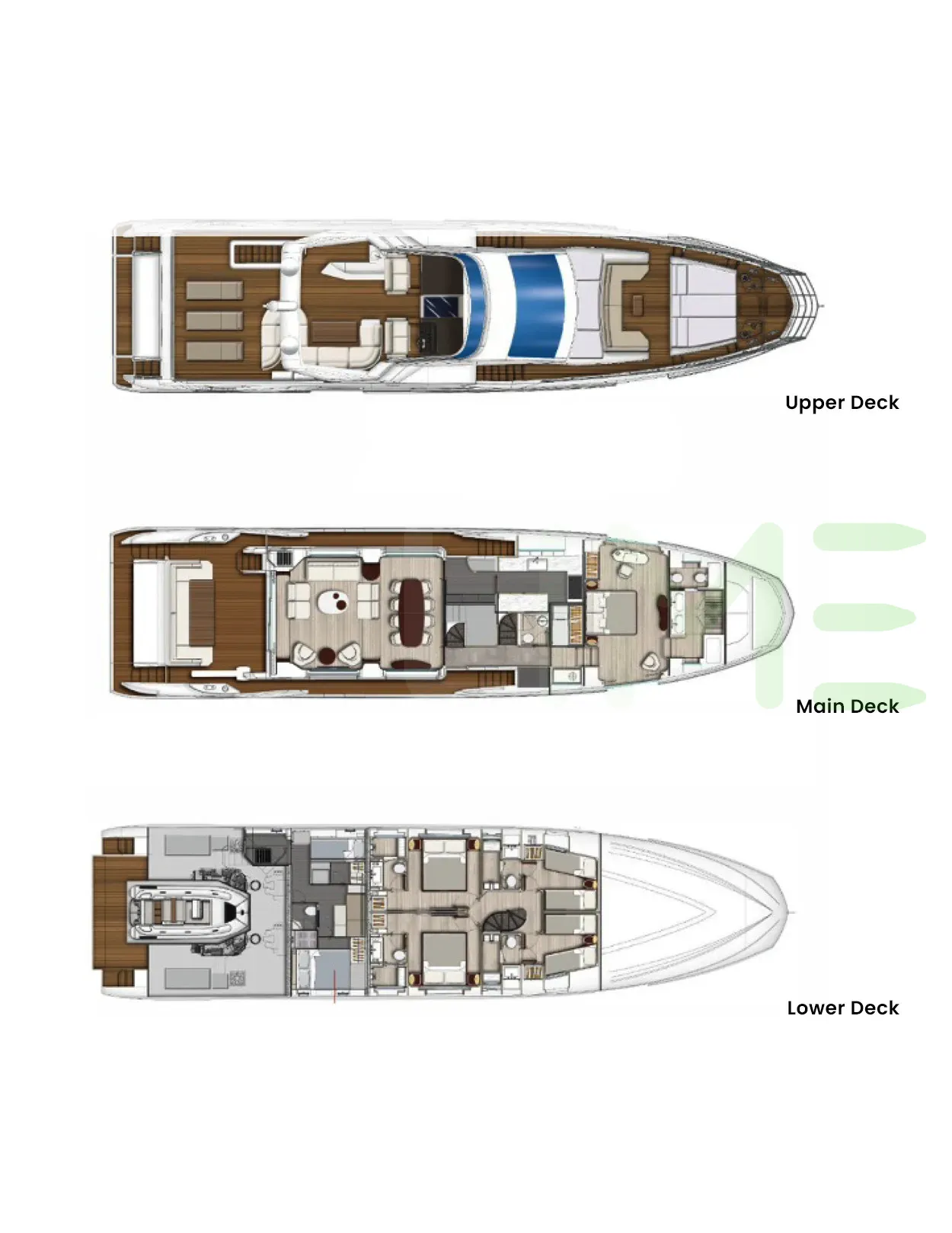 Request plans that include the layout of staterooms, guest areas, and outdoor spaces, as well as crew quarters and work areas.
