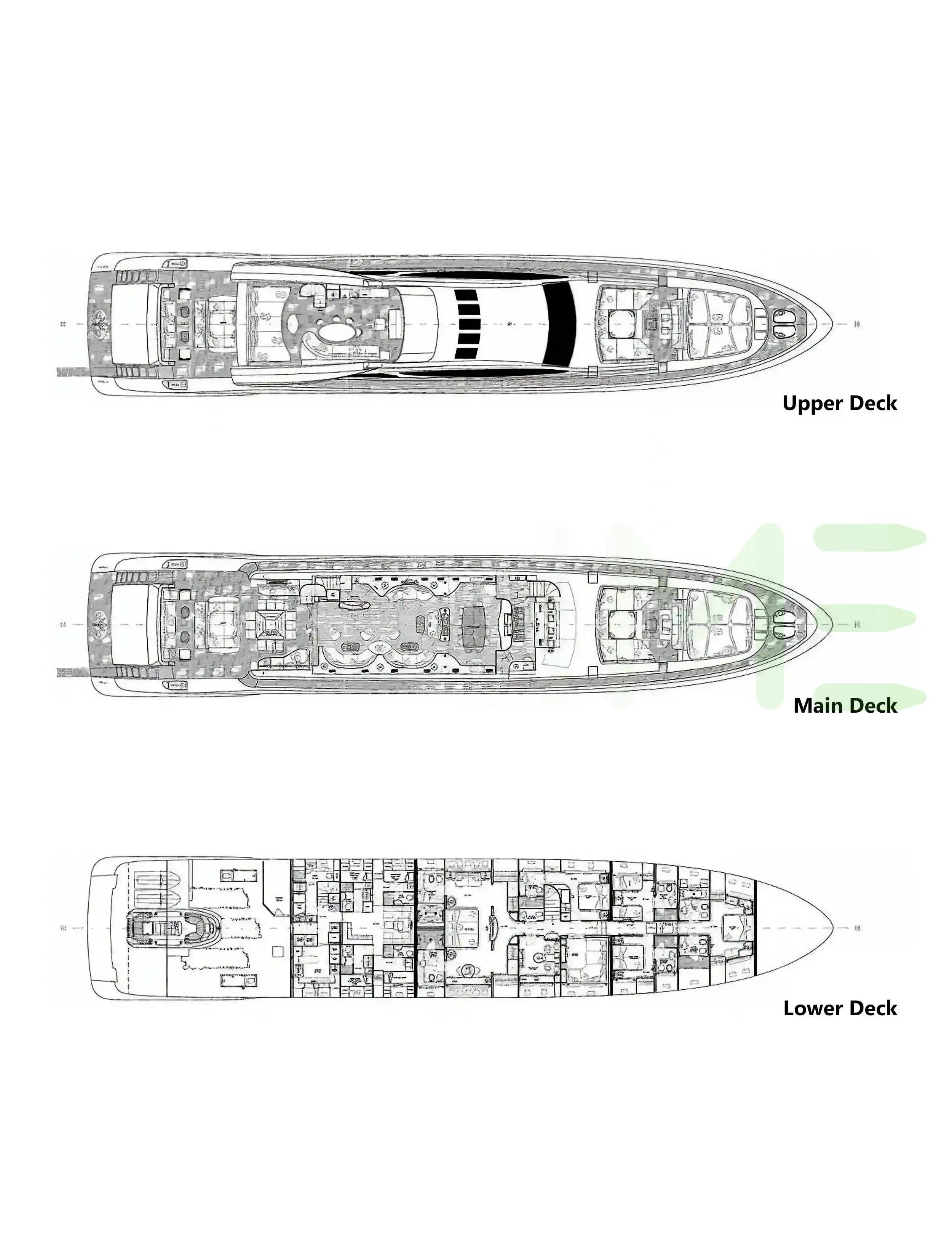 Request plans that include the layout of staterooms, guest areas, and outdoor spaces, as well as crew quarters and work areas.