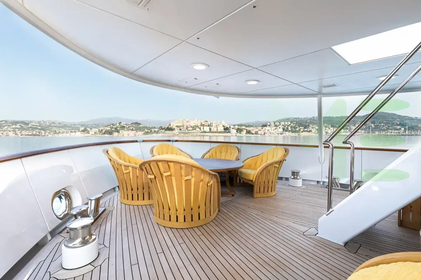 Enhanced by her steel full-displacement hull, and aluminium superstructure, a higher level of seaworthiness and comfort for those on board the SECRET LOVE yacht for sale has been achieved. The visual appeal of the exterior is complimented by the rich color and distinctive grain patterns of teak decks that lend an air of sophistication to the yacht's appearance.