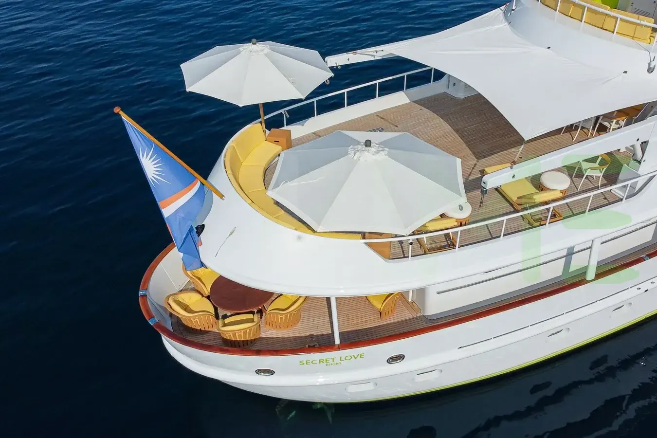 Up to 8 guests can be accommodated on board the yacht SECRET LOVE in 4 staterooms. SECRET LOVE also includes accommodations for 5 crew members, including the yacht’s captain. Whether you envision private escapes or unforgettable voyages, you're invited to discover a world where elegance meets adventure.