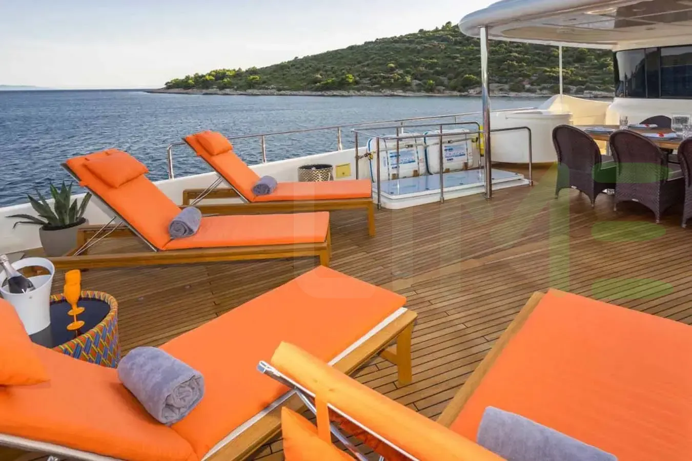 - Private foredeck lounging areas