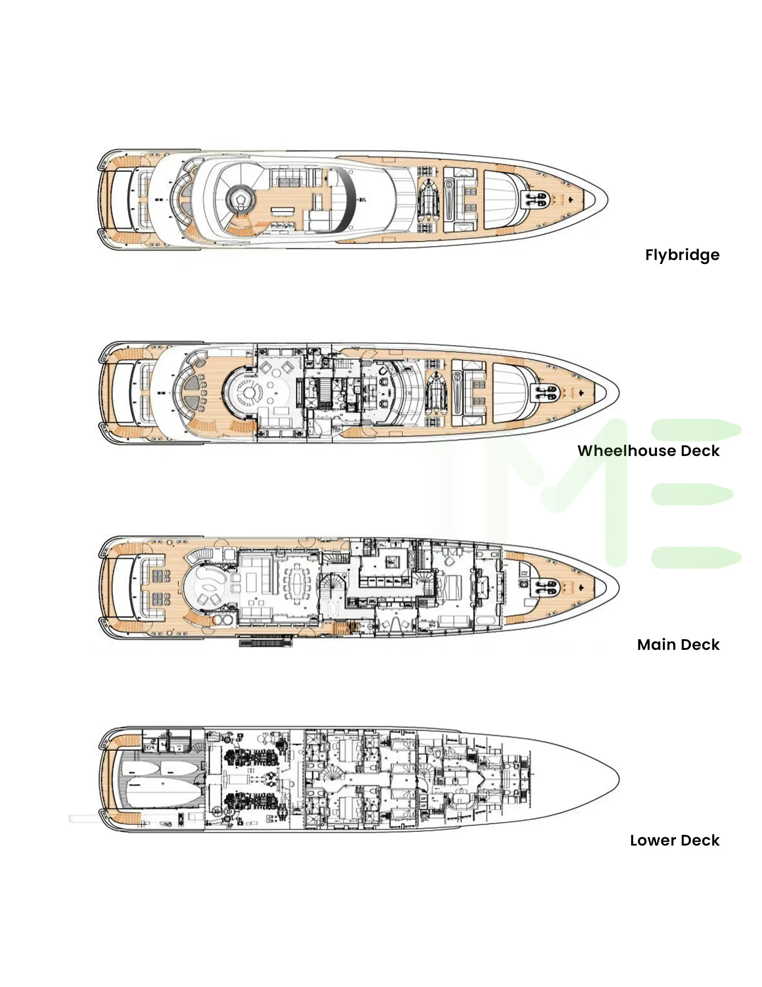 Request plans that include the layout of staterooms, guest areas, and outdoor spaces, as well as crew quarters and work areas.
