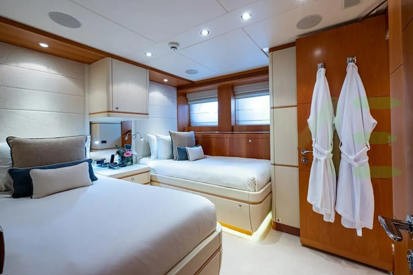 Up to 12 guests can be accommodated on board the yacht SHARKFINN in 5 staterooms. SHARKFINN also includes accommodations for 9 crew members, including the yacht’s captain. Whether you envision private escapes or unforgettable voyages, you're invited to discover a world where elegance meets adventure.