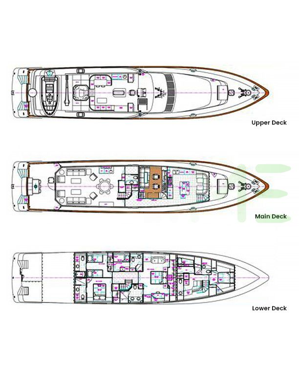 Request plans that include the layout of staterooms, guest areas, and outdoor spaces, as well as crew quarters and work areas.