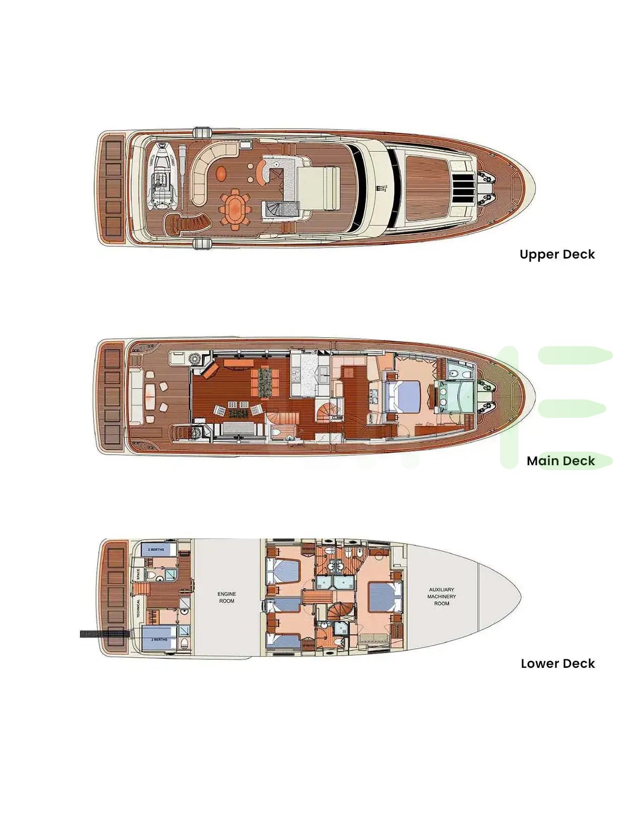 Request plans that include the layout of staterooms, guest areas, and outdoor spaces, as well as crew quarters and work areas.