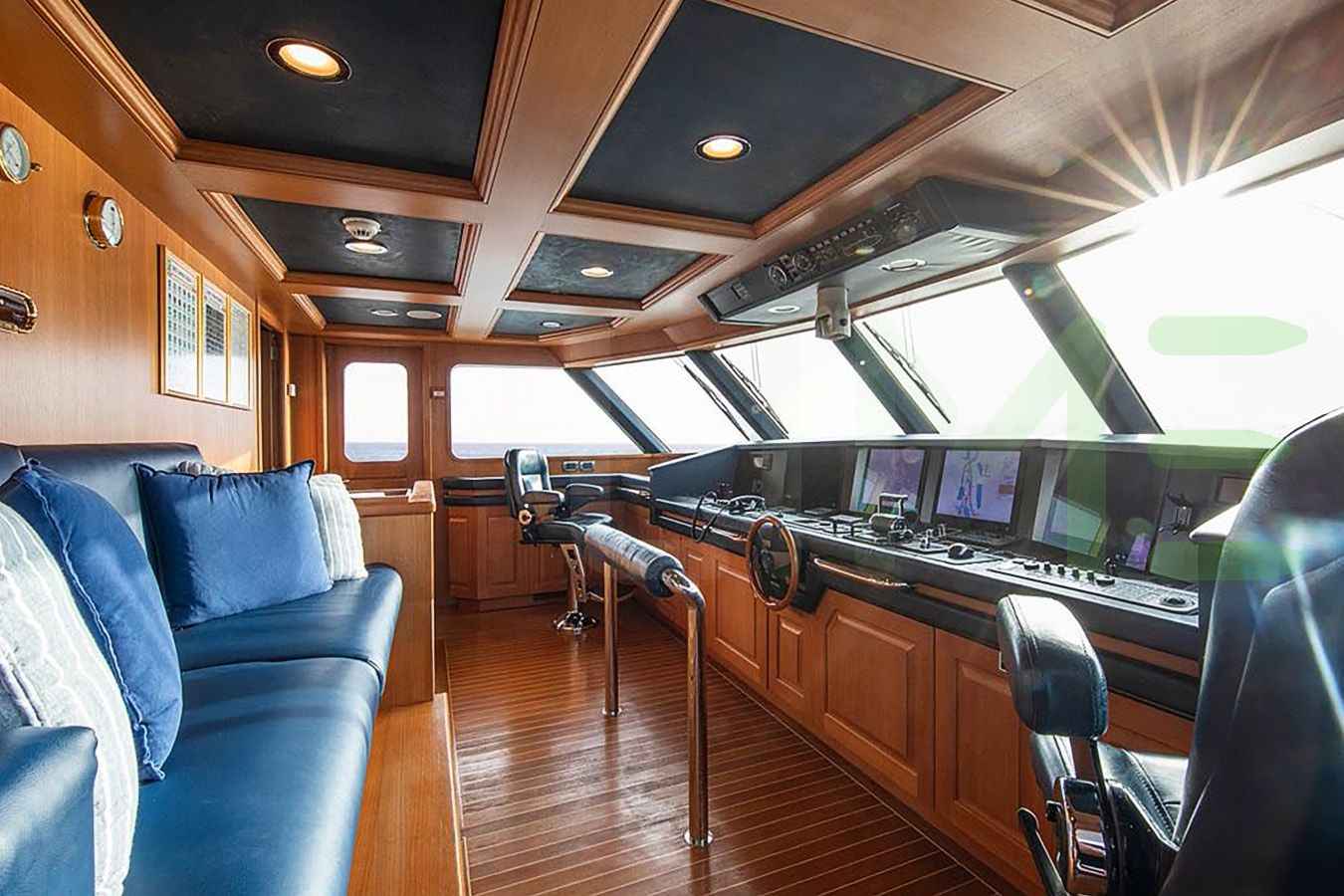 SOLINDA is a full-displacement oceangoing mono-hull motoryacht, with a beam of 28' 6" (8.69 meters), offering stability and comfort during blue water open ocean navigation, including near coastal and inland cruising. Her full-displacement hull shape and draft of 10' 6" (3.2 meters) further contribute to a yacht with a longer range, stowage, and a smooth sailing experience, making her ideal for extended journeys and global travel.