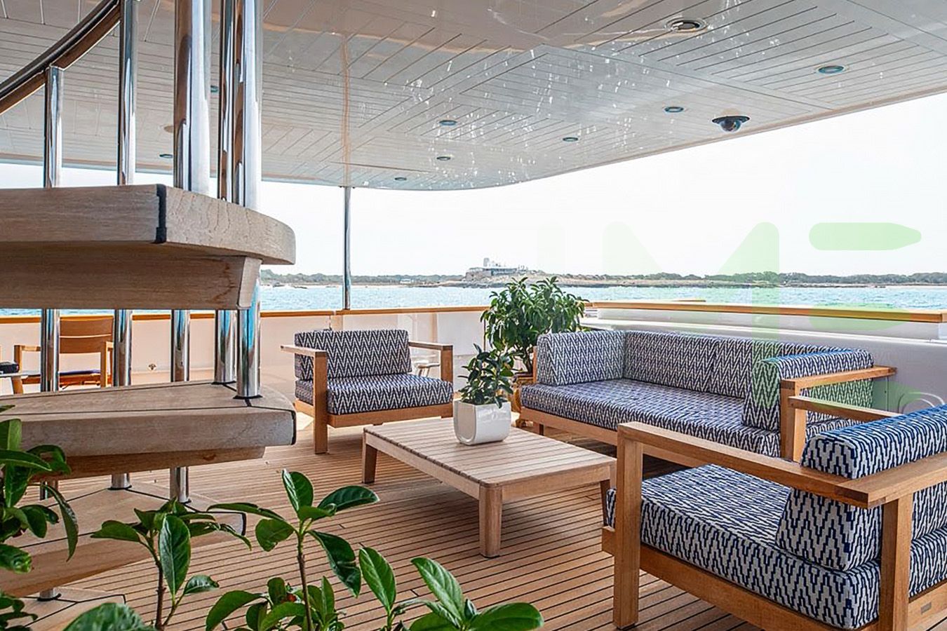 Enhanced by her steel full-displacement hull, and aluminium superstructure, a higher level of seaworthiness and comfort for those on board the SOLINDA yacht has been achieved. The visual appeal of the exterior is complimented by the rich color and distinctive grain patterns of teak decks that lend an air of sophistication to the yacht's appearance.