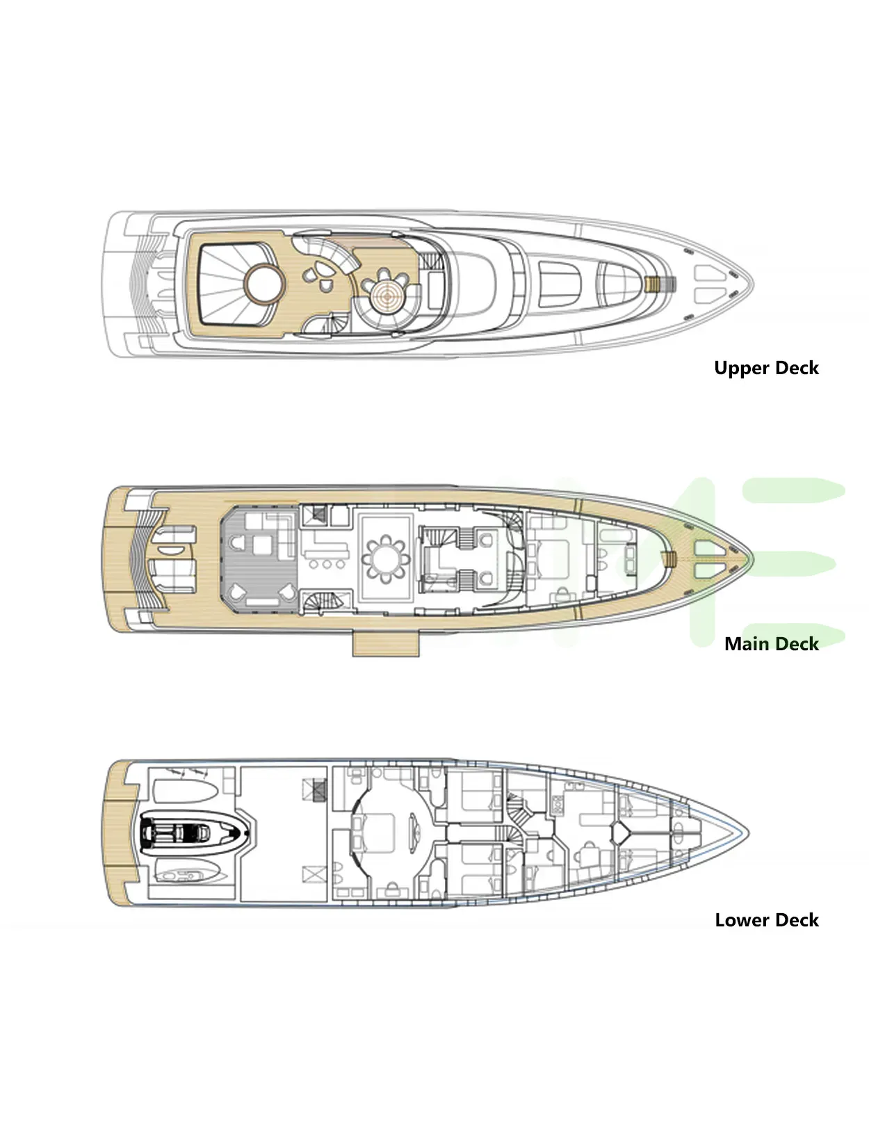 Request plans that include the layout of staterooms, guest areas, and outdoor spaces, as well as crew quarters and work areas.