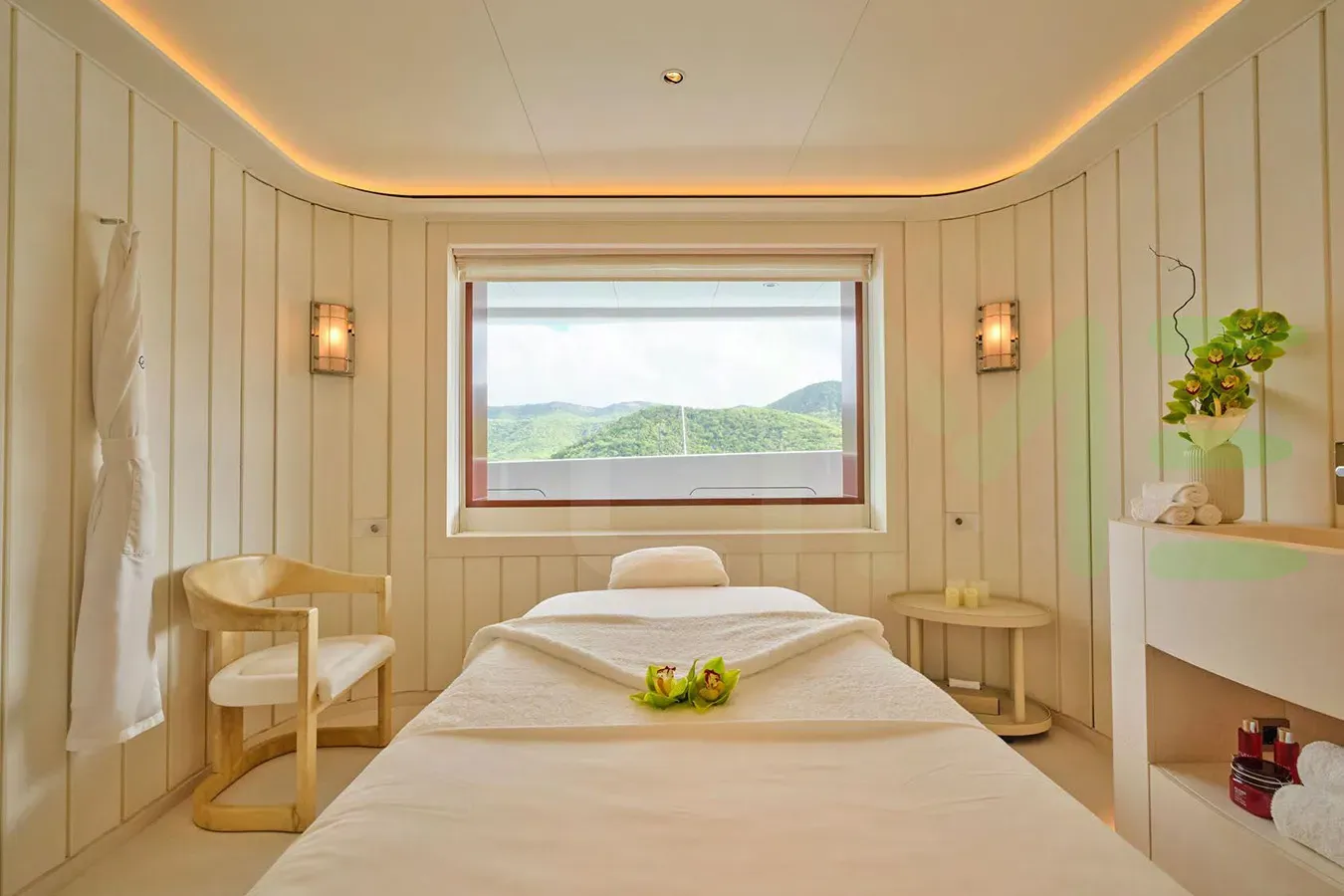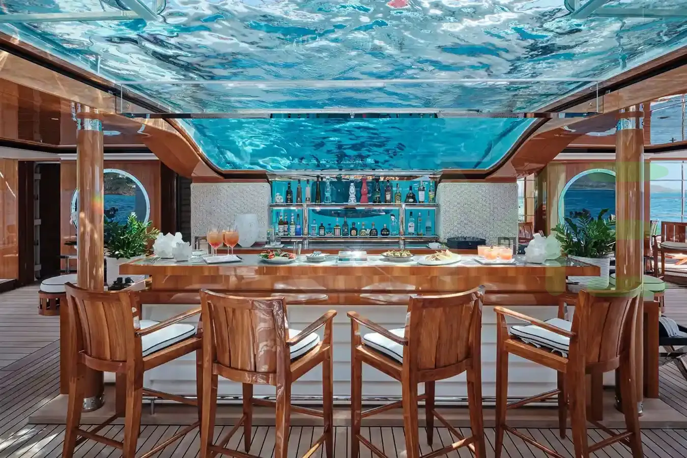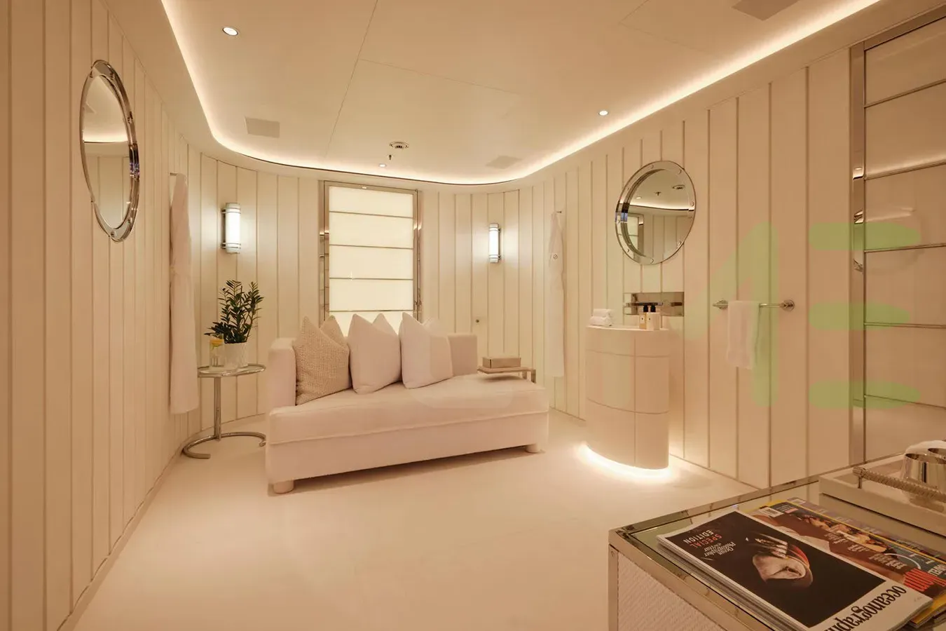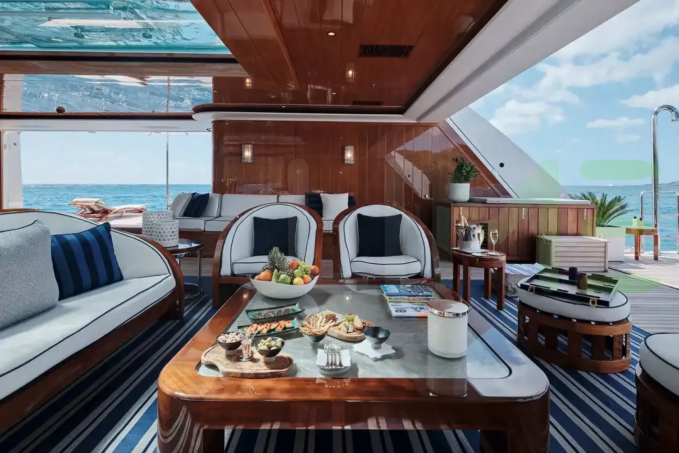 Keeping comfortable and entertained on Faith is easy thanks to the available amenities, particularly a stunning fireplace, providing the perfect place to curl up and relax. A piano is also present to create a fantastic atmosphere or elsewhere, the yacht's library is a beautiful addition to her range of leisure facilities, and acts as a lovely spot for relaxing or browsing. Alternatively Faith boasts a movie theatre, perfect to relax after a long day on the water. The steam room is great for your skin and a perfect place to unwind and in addition kick back and relax in the well-appointed spa. Guests can enjoy a dip in the pool or head to the beach club and take advantage of indoor-outdoor living and entertaining. A gym with all the latest equipment is available for a good work out.