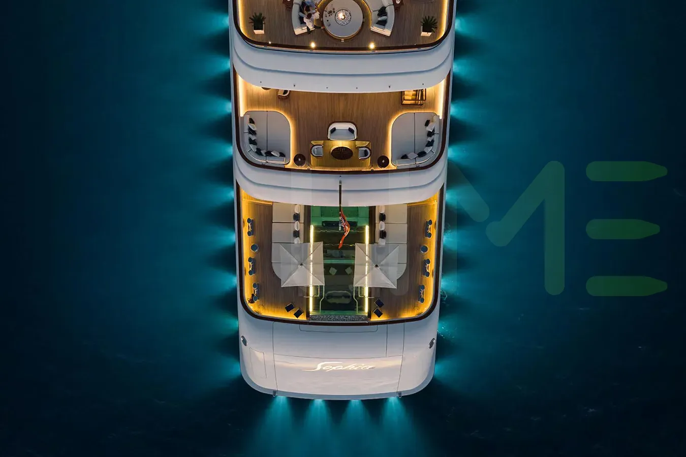 Up to 12 guests can be accommodated on board the yacht SOPHIA in 7 staterooms. SOPHIA also includes accommodations for 32 crew members, including the yacht’s captain. Whether you envision private escapes or unforgettable voyages, you're invited to discover a world where elegance meets adventure.