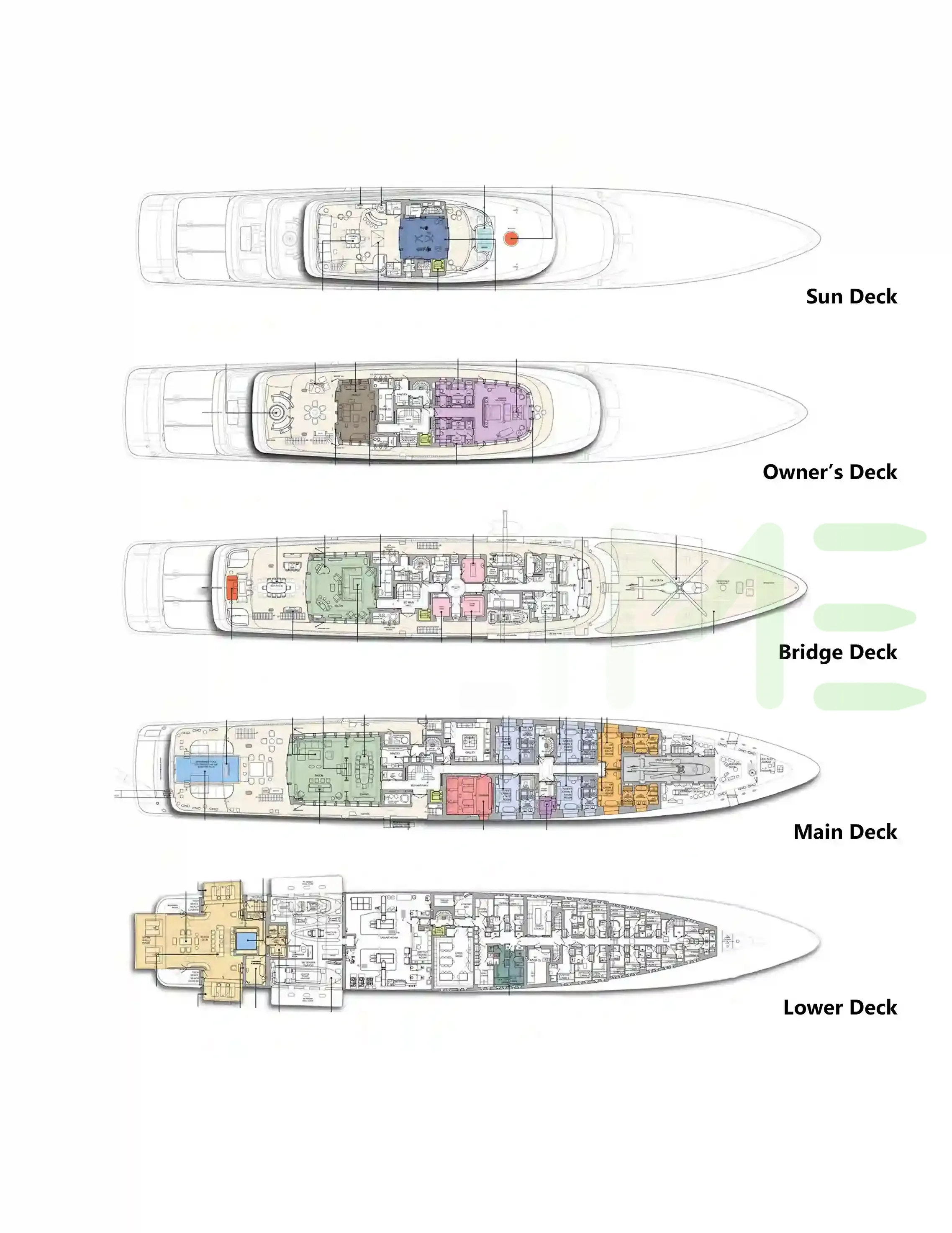 Request plans that include the layout of staterooms, guest areas, and outdoor spaces, as well as crew quarters and work areas.