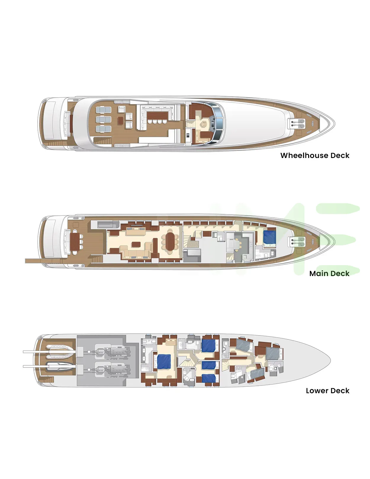 Request plans that include the layout of staterooms, guest areas, and outdoor spaces, as well as crew quarters and work areas.