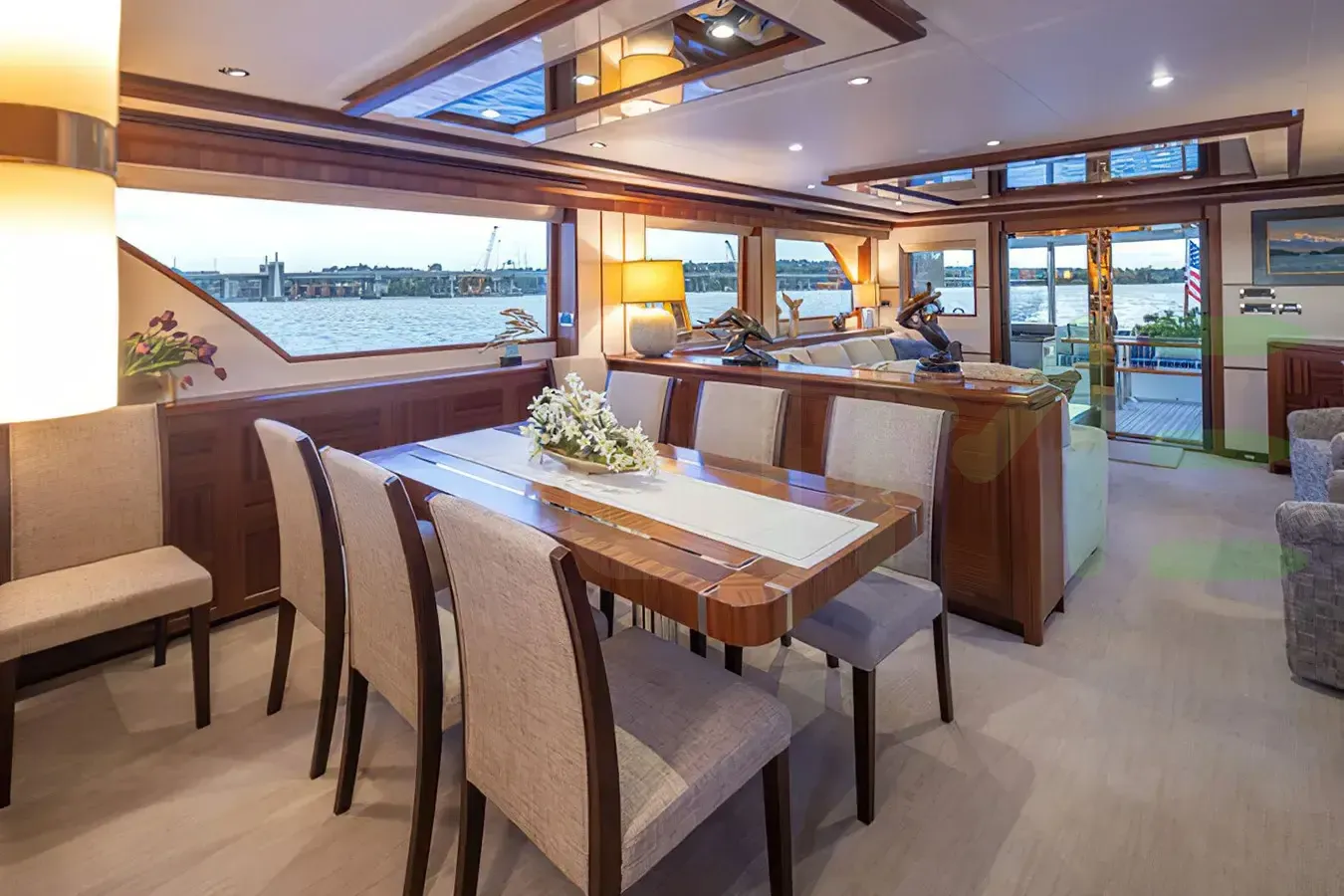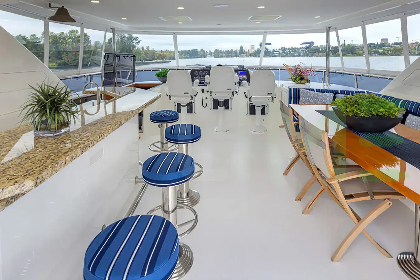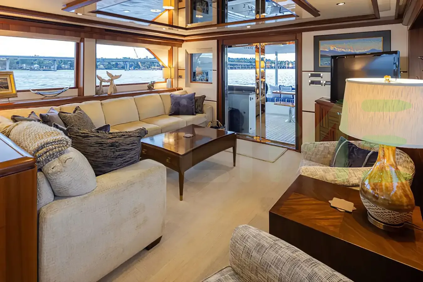 SPILL POINT is a semi-displacement mono-hull flybridge motoryacht, with a beam of 20' 1" (6.12 meters), offering stability and comfort during near coastal and inland cruising. The semi-displacement hull shape and draft of 5' 11" (1.8 meters) further enhances her speed, allowing quick sprints from port to port, making her ideal for visiting the maximum number of destinations on your itinerary in the shortest period.