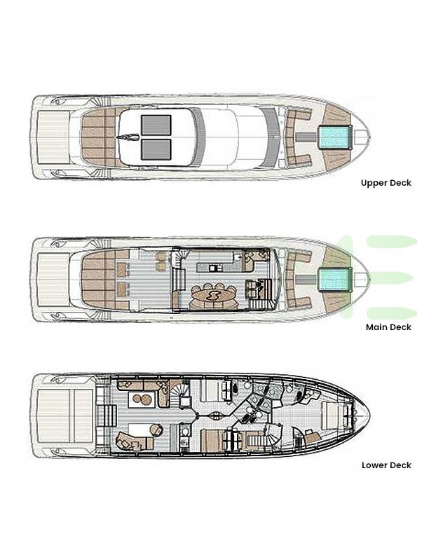 Request plans that include the layout of staterooms, guest areas, and outdoor spaces, as well as crew quarters and work areas.