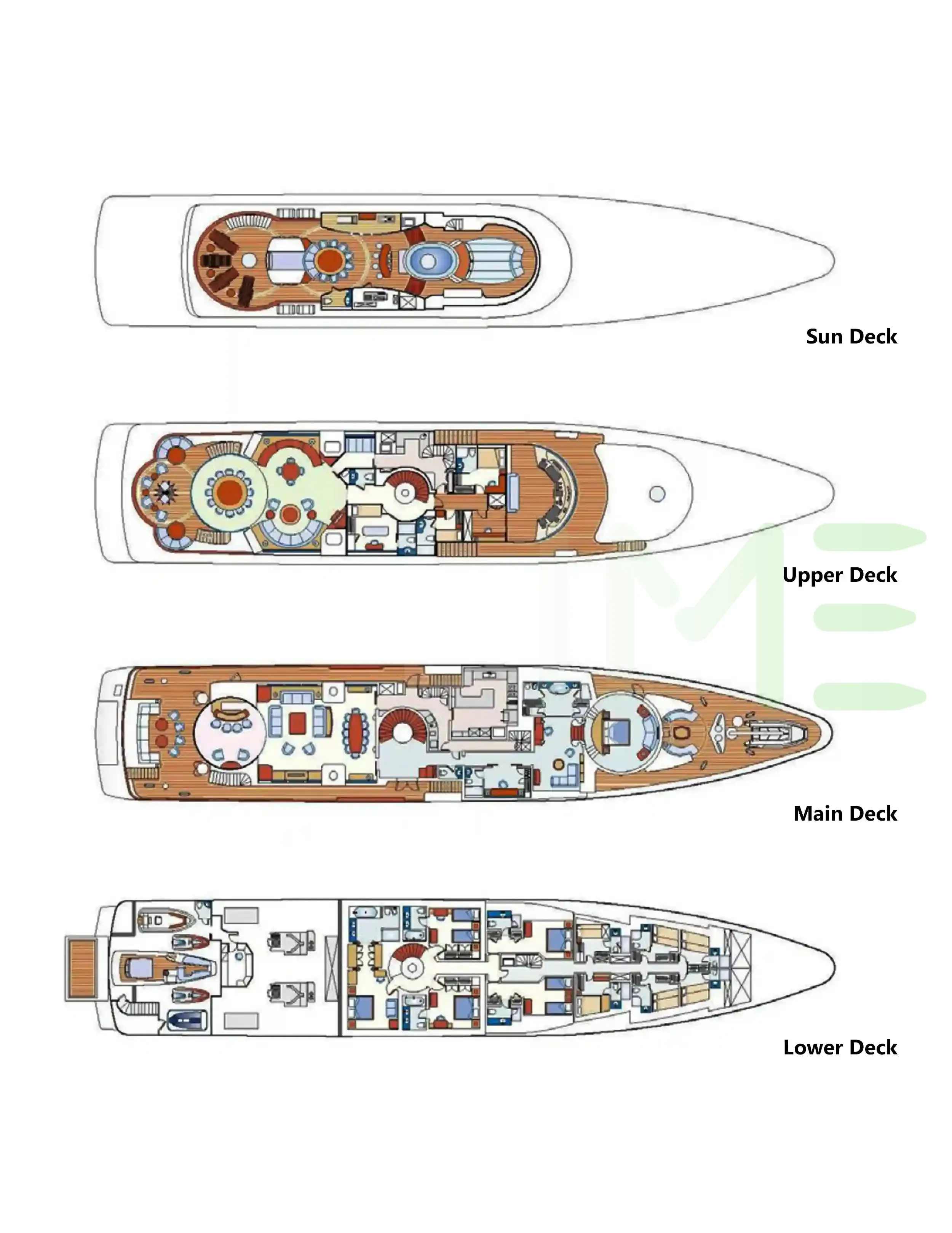 Request plans that include the layout of staterooms, guest areas, and outdoor spaces, as well as crew quarters and work areas.