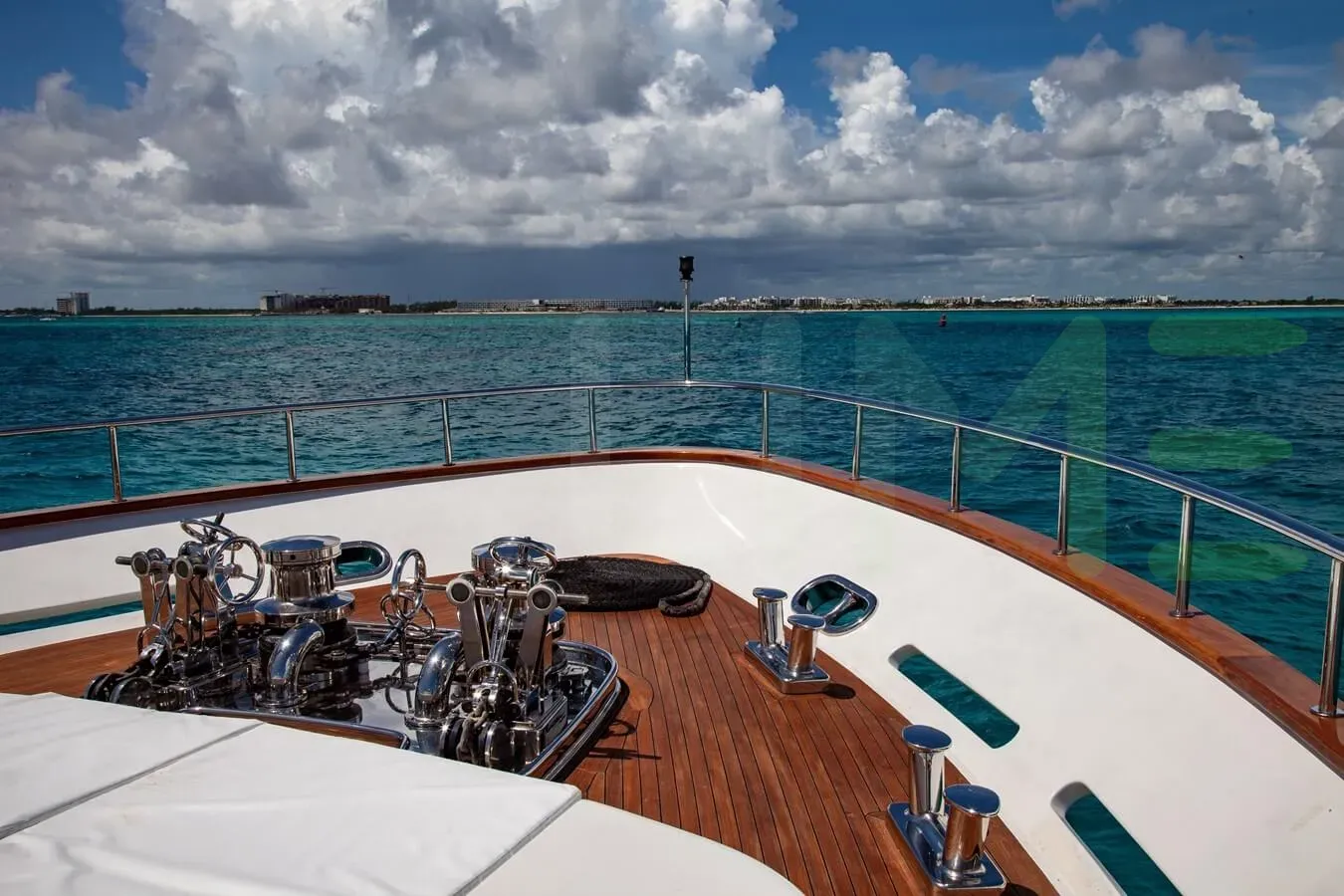 SUNRISE is a semi-displacement mono-hull luxury motoryacht, with a beam of 25' 6" (7.76 meters), offering stability and comfort during near coastal and inland cruising. The semi-displacement hull shape and draft of 5' 9" (1.75 meters) further enhances her speed, allowing quick sprints from port to port, making her ideal for visiting the maximum number of destinations on your itinerary in the shortest period.