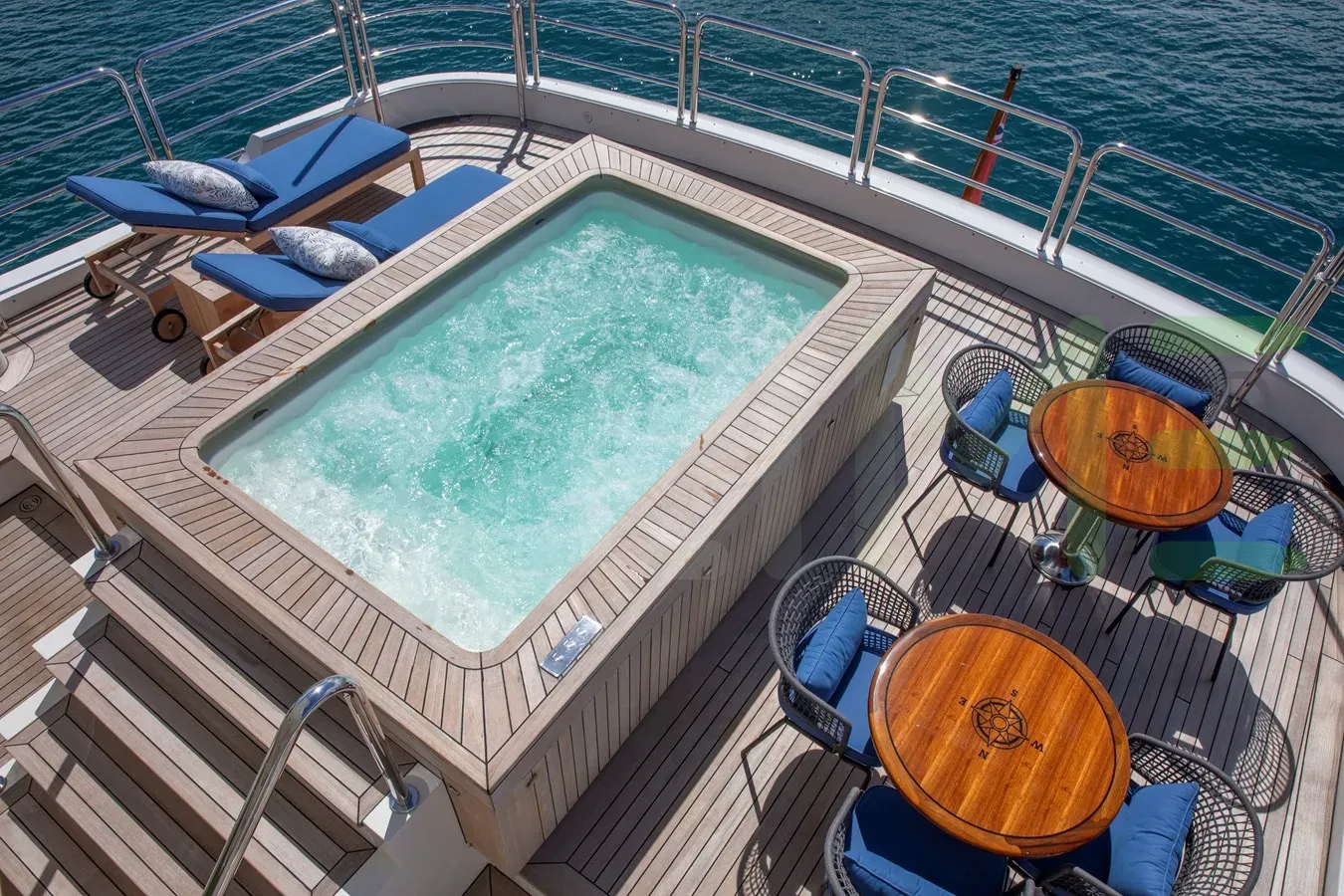 Her features include satellite communications, gym, deck jacuzzi, WiFi and air conditioning.