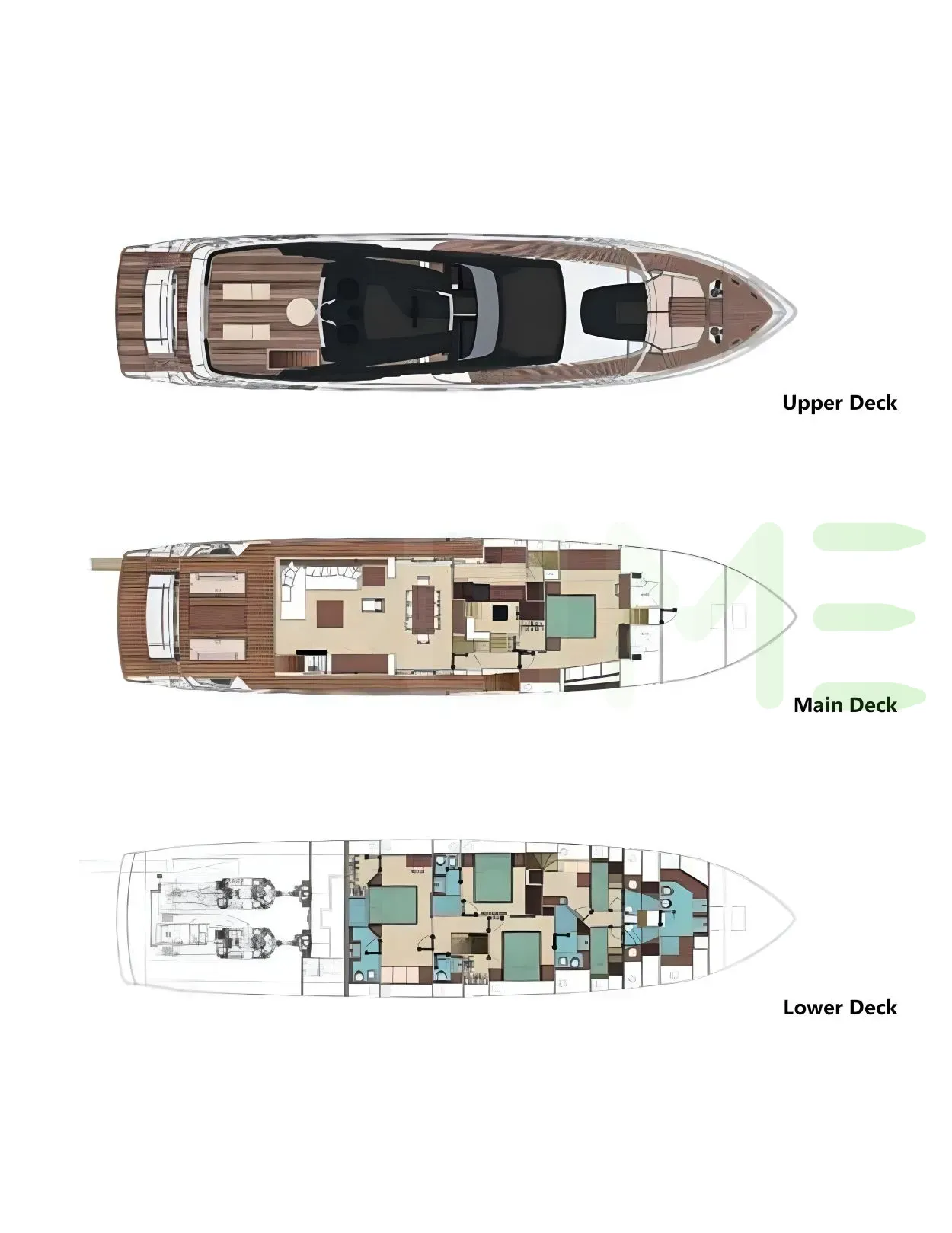 Request plans that include the layout of staterooms, guest areas, and outdoor spaces, as well as crew quarters and work areas.