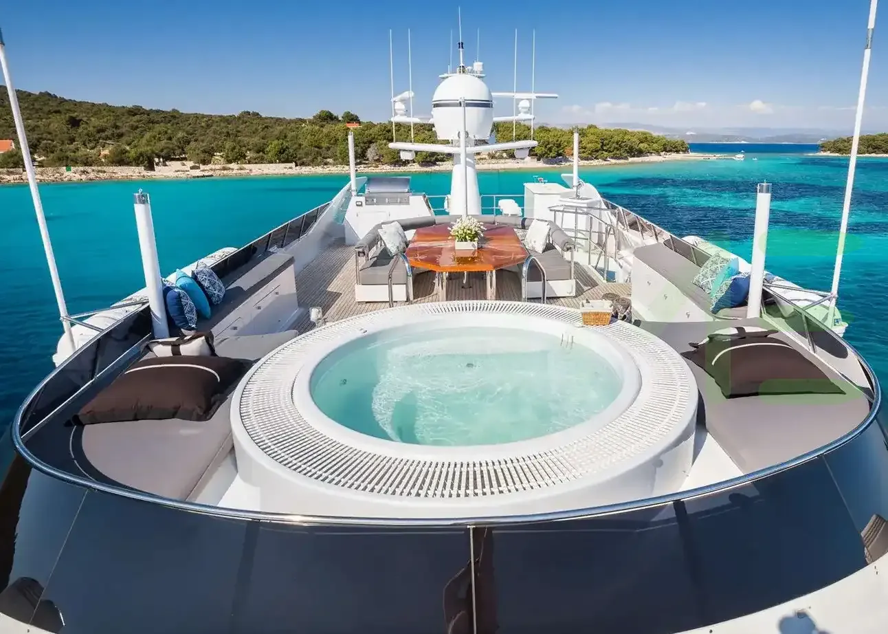 TAHI is a semi-displacement mono-hull luxury motoryacht, with a beam of 27' 8" (8.43 meters), offering stability and comfort during near coastal and inland cruising. The semi-displacement hull shape and draft of 7' 3" (2.2 meters) further enhances her speed, allowing quick sprints from port to port, making her ideal for visiting the maximum number of destinations on your itinerary in the shortest period.