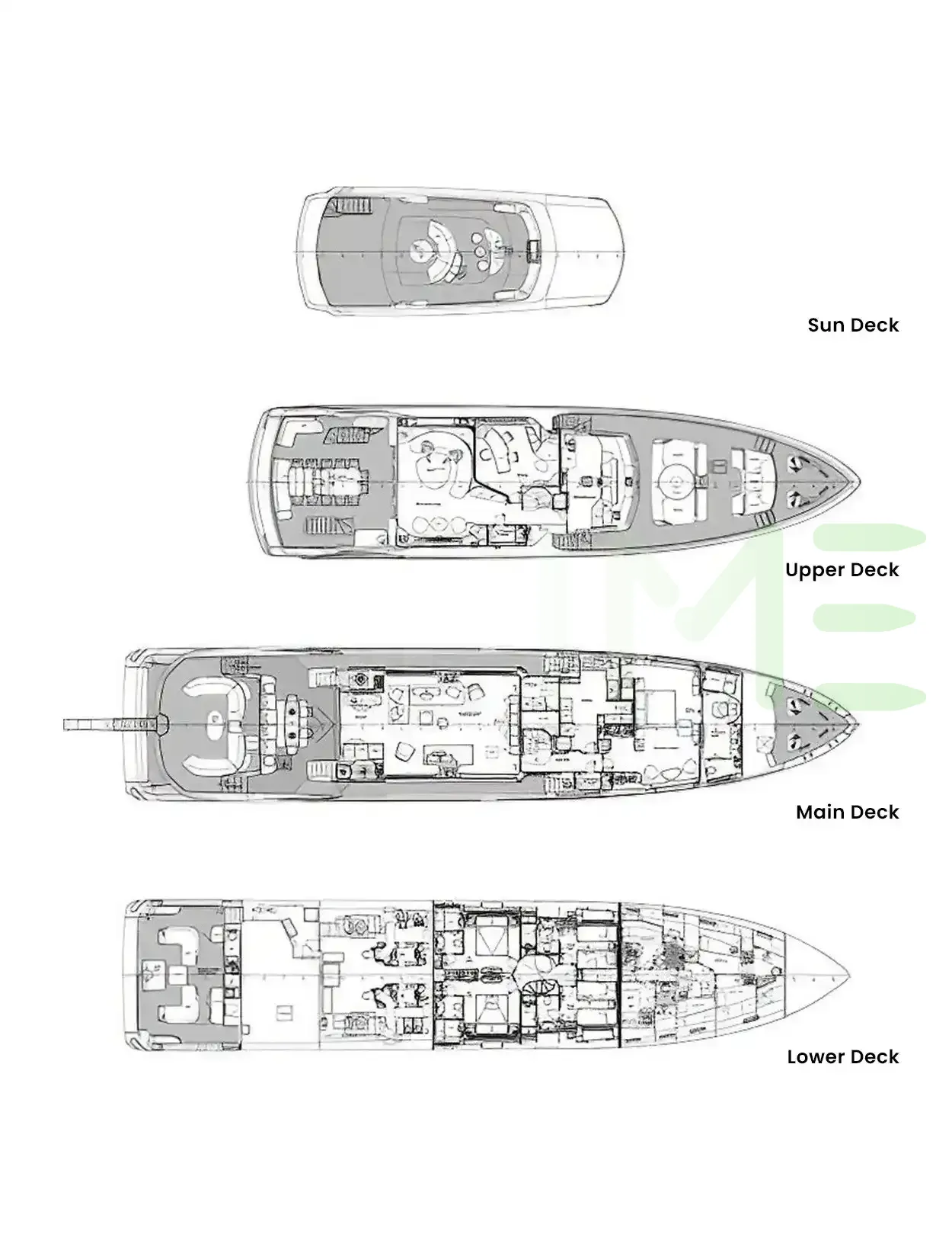 Request plans that include the layout of staterooms, guest areas, and outdoor spaces, as well as crew quarters and work areas.