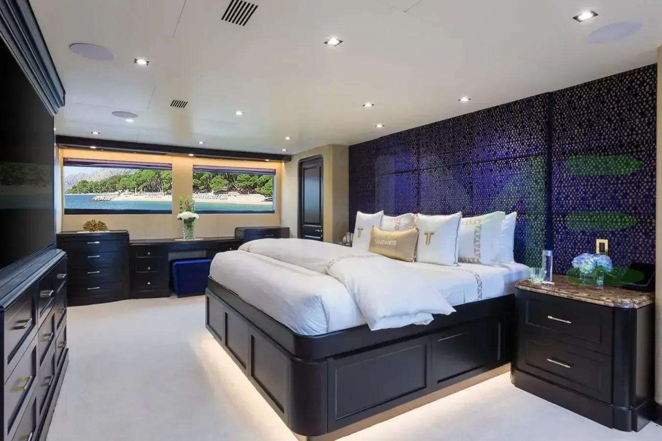 Up to 10 guests can be accommodated on board the yacht TANZANITE in 5 staterooms. TANZANITE also includes accommodations for 8 crew members, including the yacht’s captain. Whether you envision private escapes or unforgettable voyages, you're invited to discover a world where elegance meets adventure.