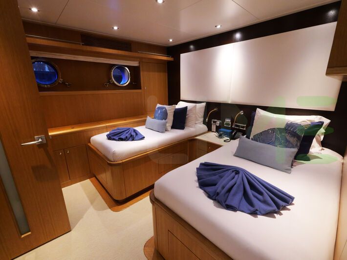 Up to 10 guests can be accommodated on board the yacht THE BIG BLUE in 5 staterooms. THE BIG BLUE also includes accommodations for 8 crew members, including the yacht’s captain. Whether you envision private escapes or unforgettable voyages, you're invited to discover a world where elegance meets adventure.