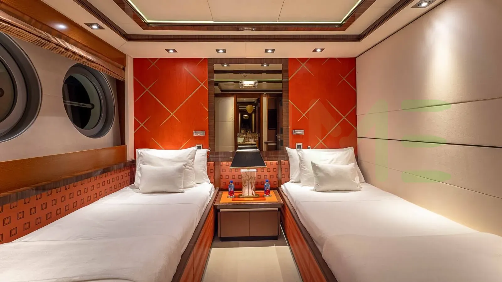Up to 12 guests can be accommodated on board the yacht THUNDER in 5 staterooms. THUNDER also includes accommodations for 8 crew members, including the yacht’s captain. Whether you envision private escapes or unforgettable voyages, you're invited to discover a world where elegance meets adventure.