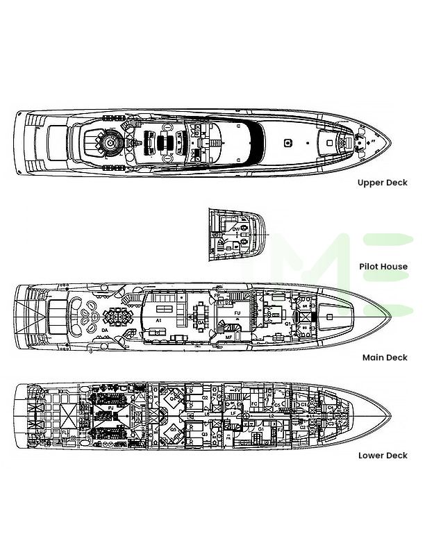 Request plans that include the layout of staterooms, guest areas, and outdoor spaces, as well as crew quarters and work areas.